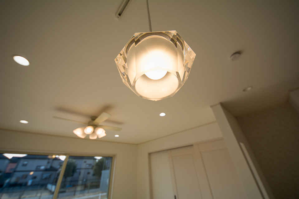 ペンダントライトがダイニングスペースをエレガントな空間に。