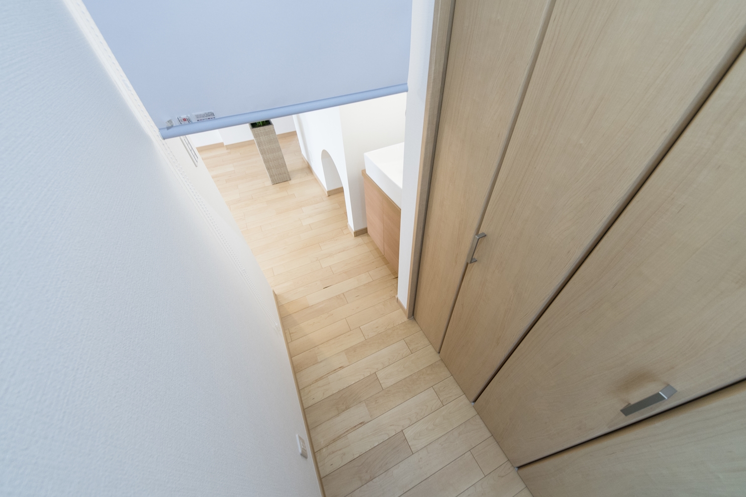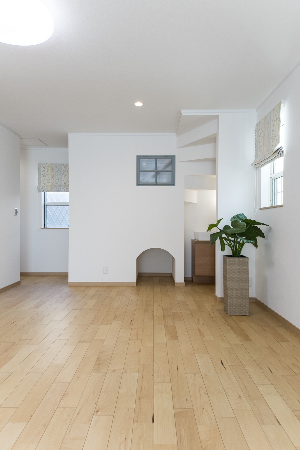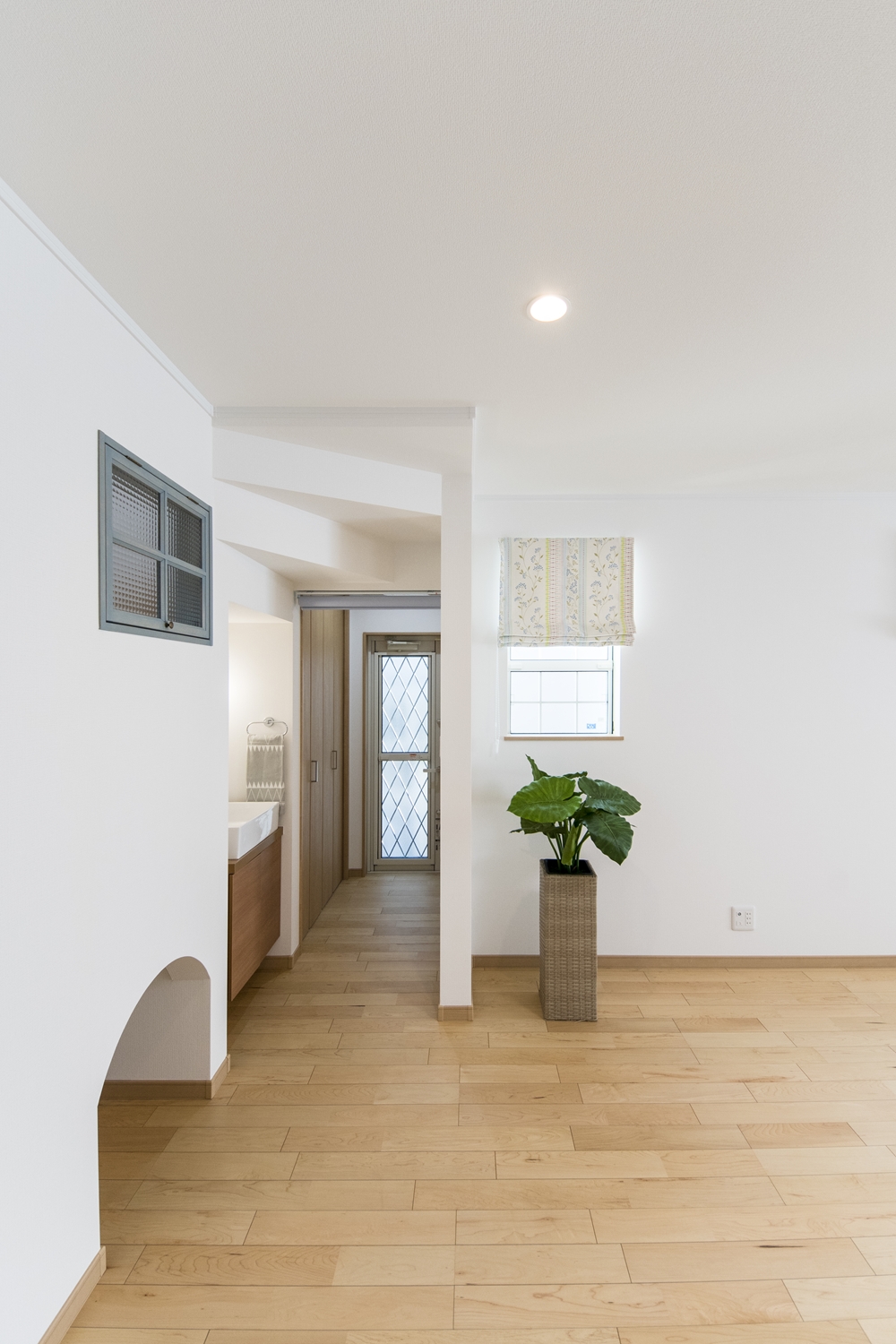 階段下の収納部分は、可愛らしいアーチ型の下り壁になっていて、空間のアクセントになりました♪
