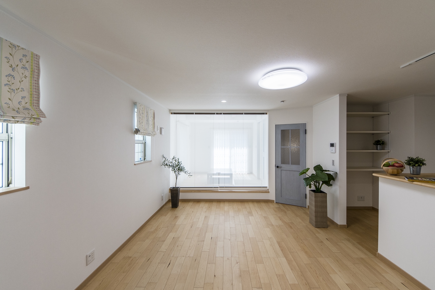 ロールスクリーンで間仕切ることで、断熱効果をアップさせました。