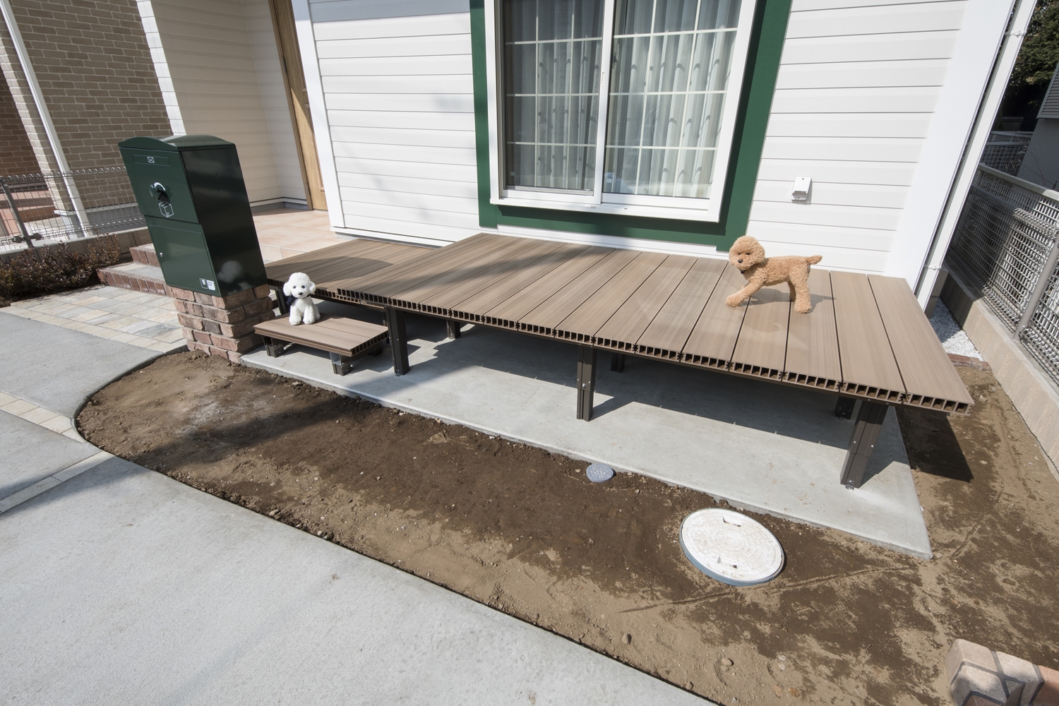 ウッドデッキ/リビングから庭へ、庭からリビングへ「アウトドアリビング」として使える快適な場所。