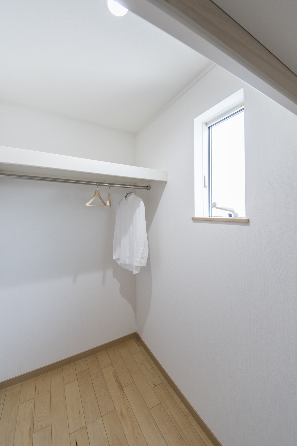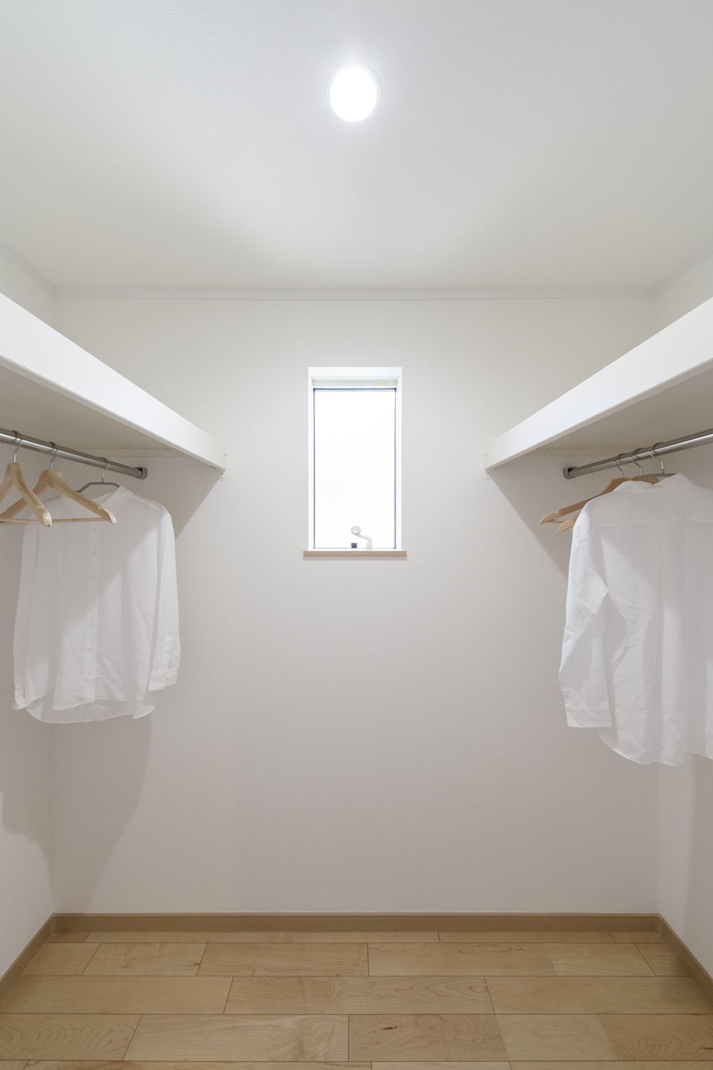 2階ファミリークローゼット/廊下からみんなが出入りできる家族共有のファミリークローゼット。