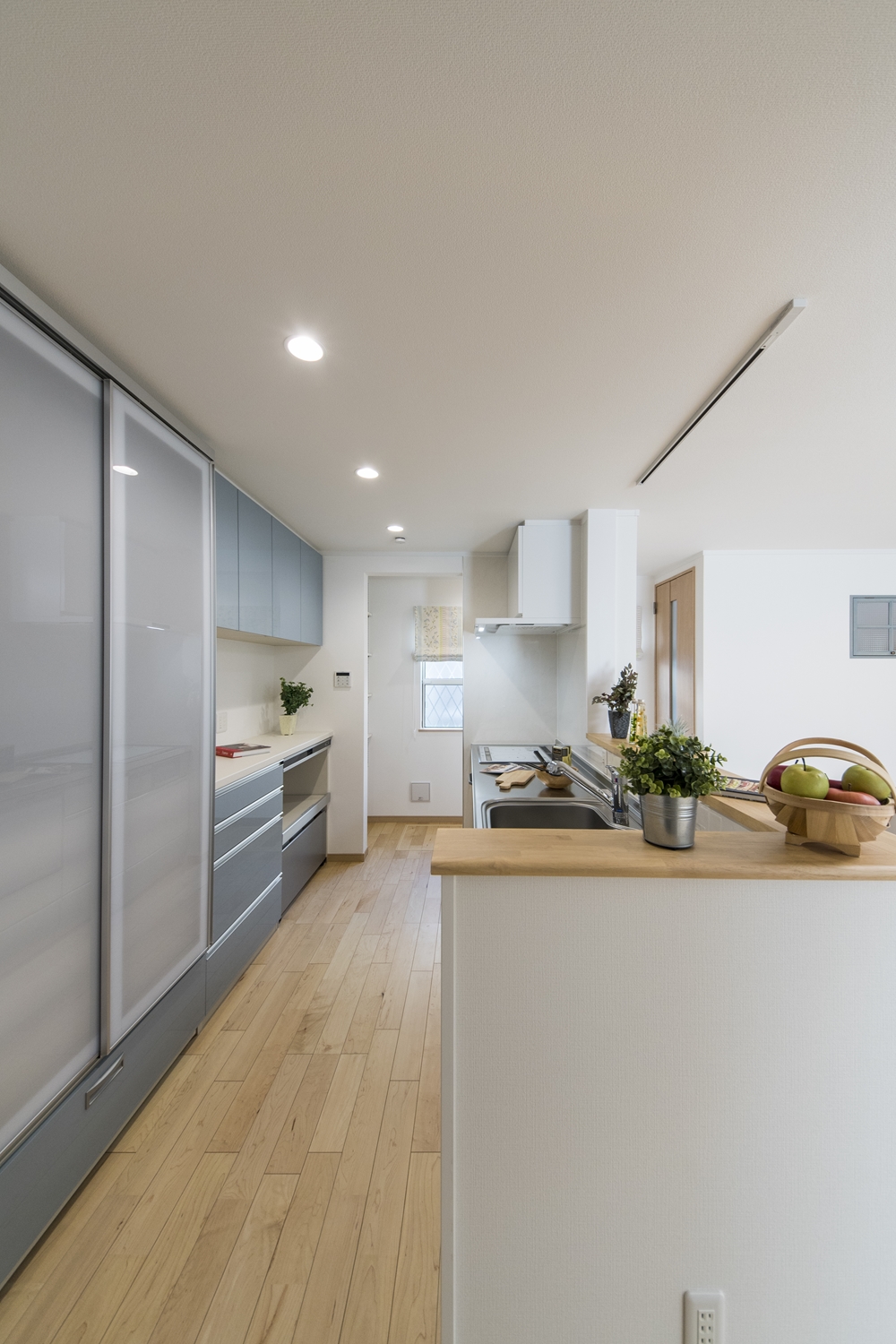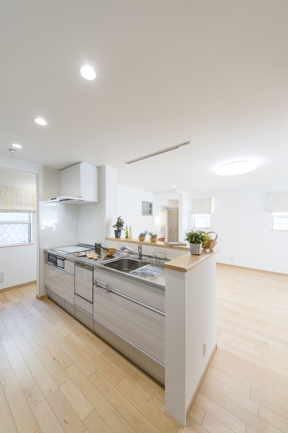 家族を見守りながら家事がこなせる、カウンター付対面キッチン。コミュニケーションを大切にしたいご家族におすすめします。