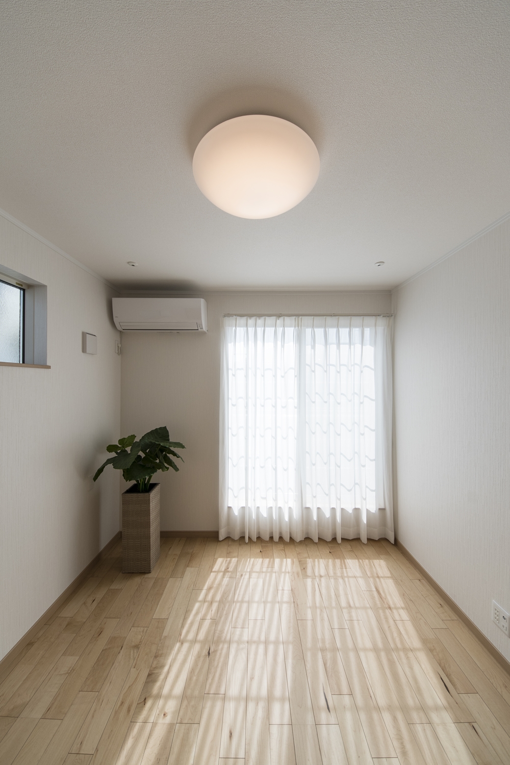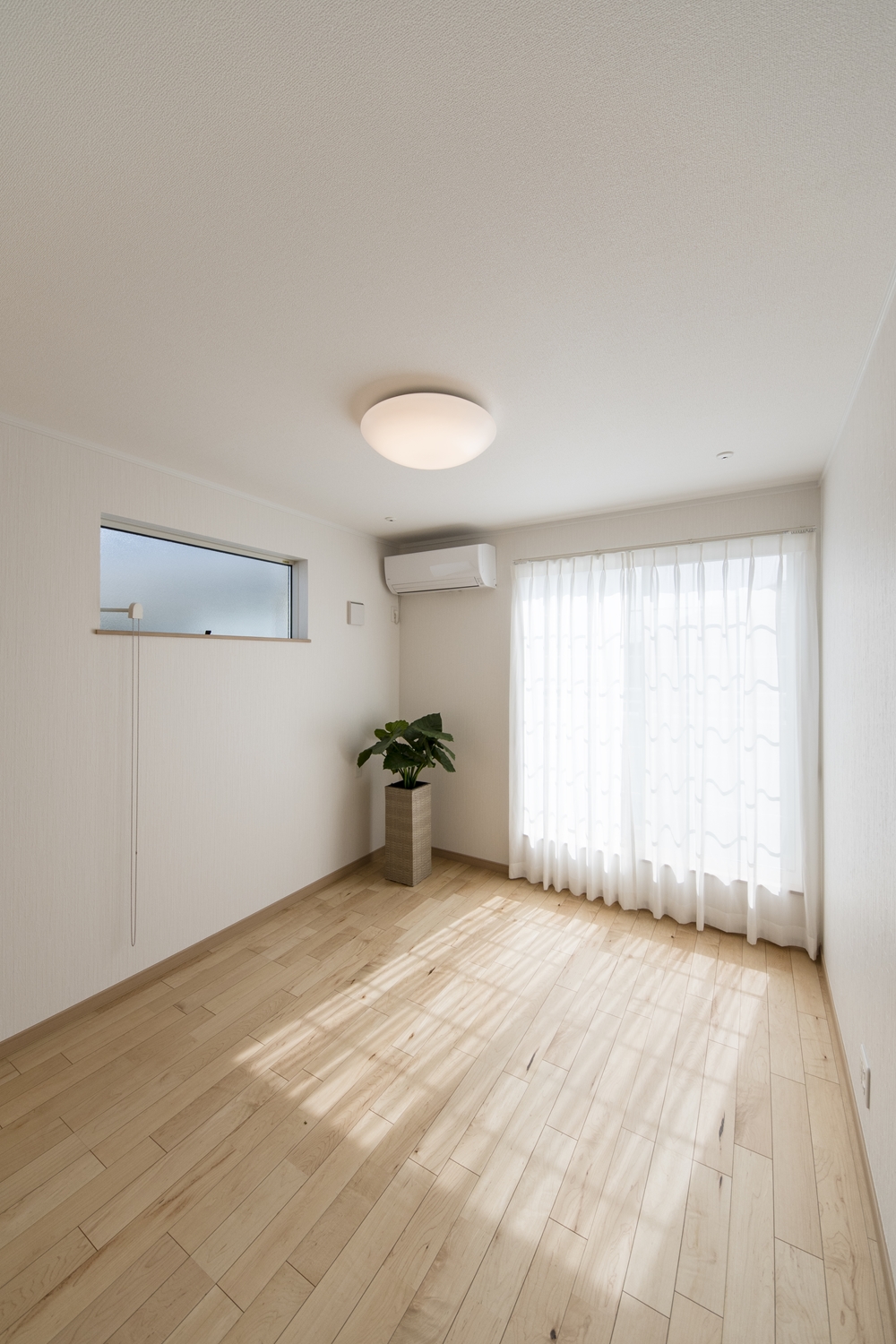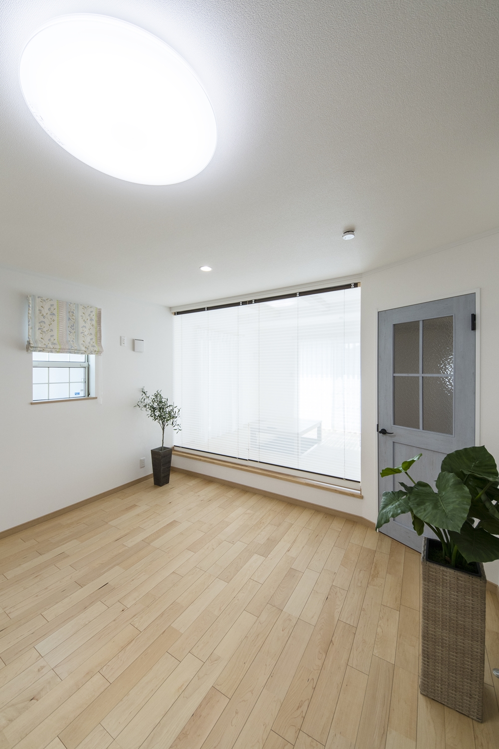 2階洋室/大きな窓から自然のやさしい光が降り注ぐ明るい室内。