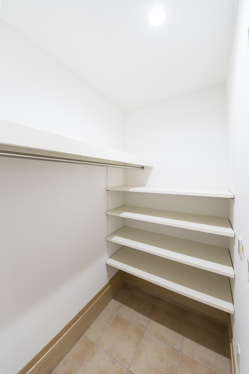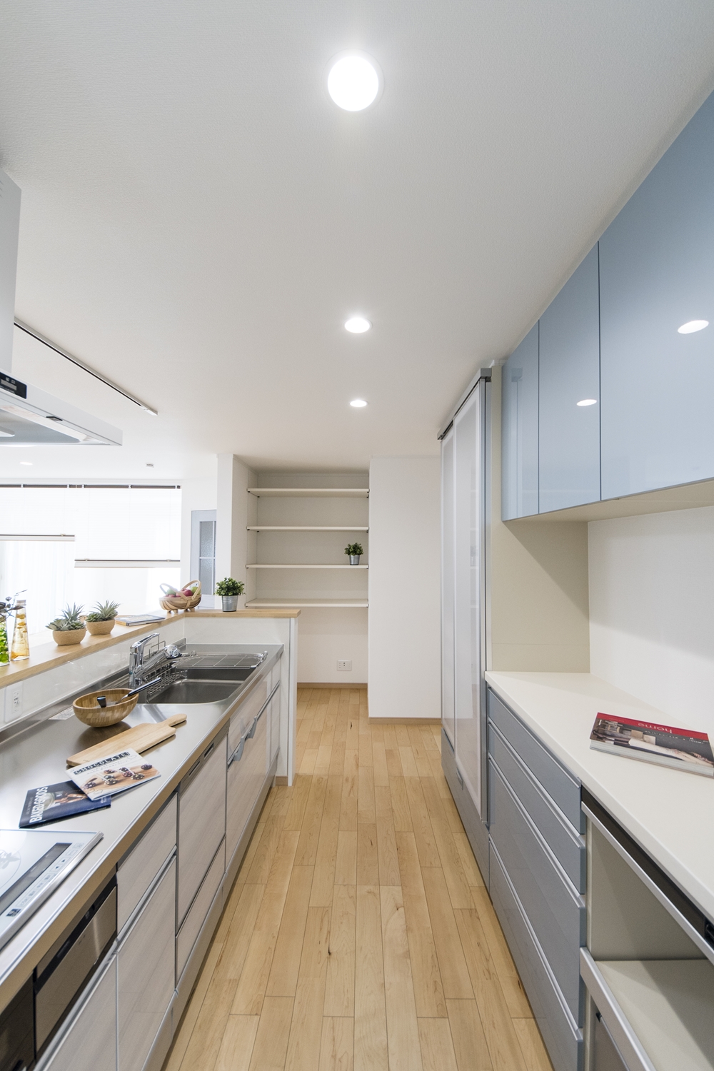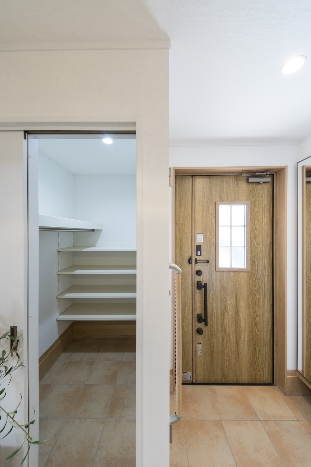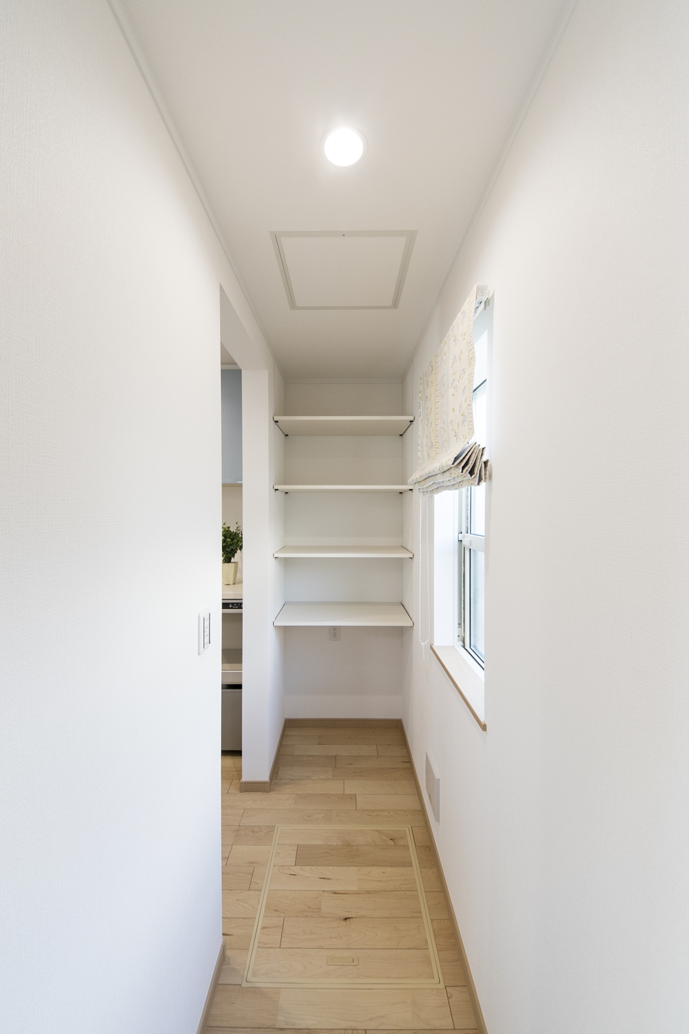 収納豊富なパントリースペース。買い物あとの片づけがスムーズにできます。