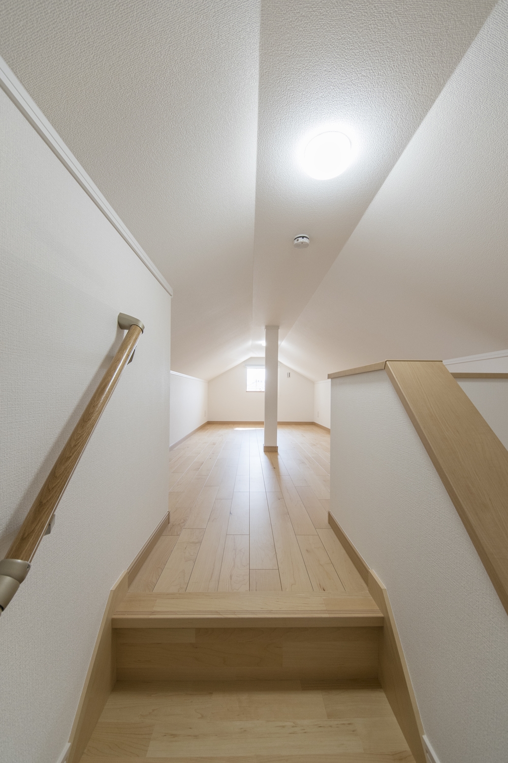収納力のあるロフト/2階廊から階段を昇るとそこにはロフトが♪屋根裏のスペースを有効活用して、季節ものやご家族の大切な思い出が保管できます。