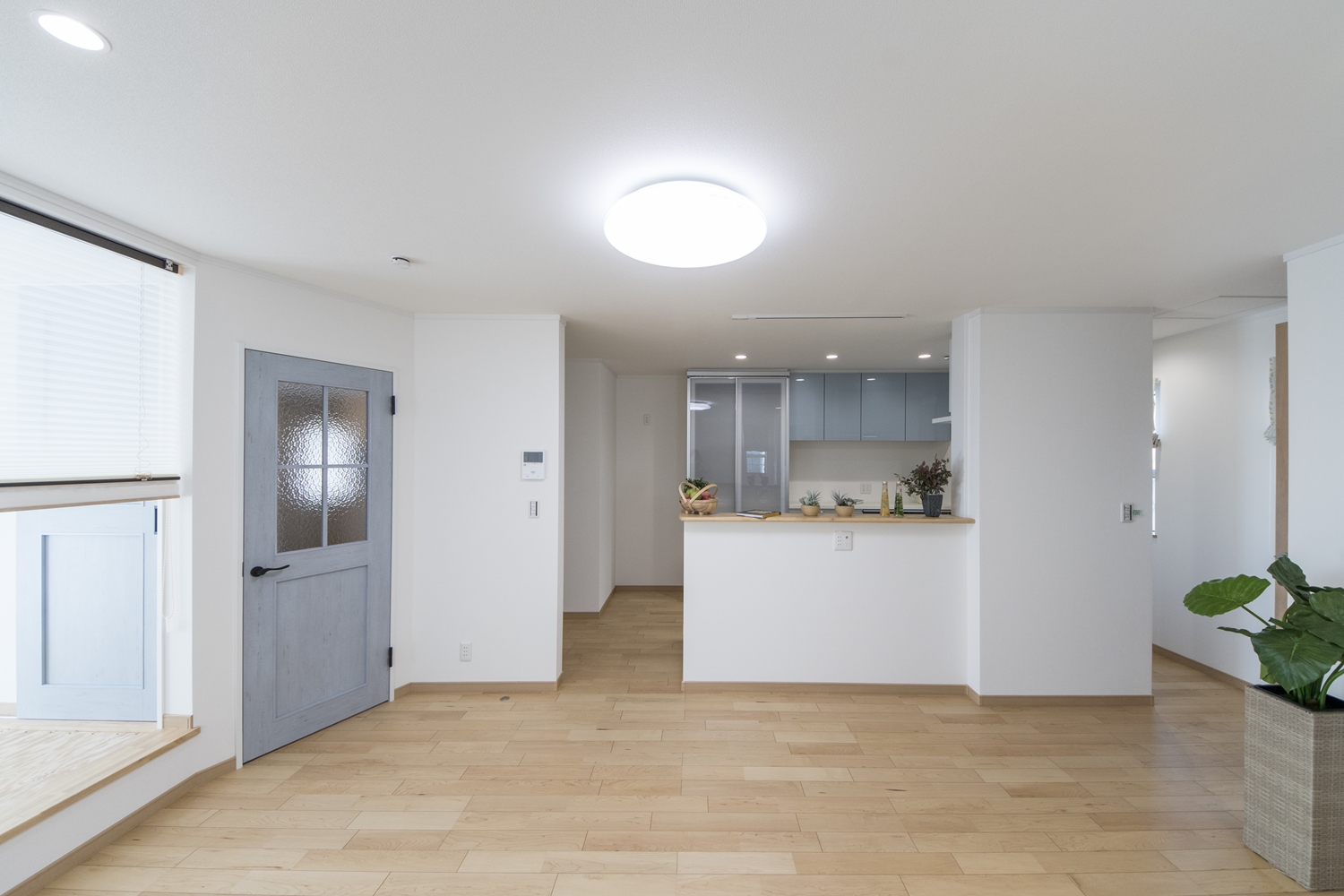 やわらかな木目が印象的なハードメープルのフローリング。ナチュラルでさわやかな空間を演出。