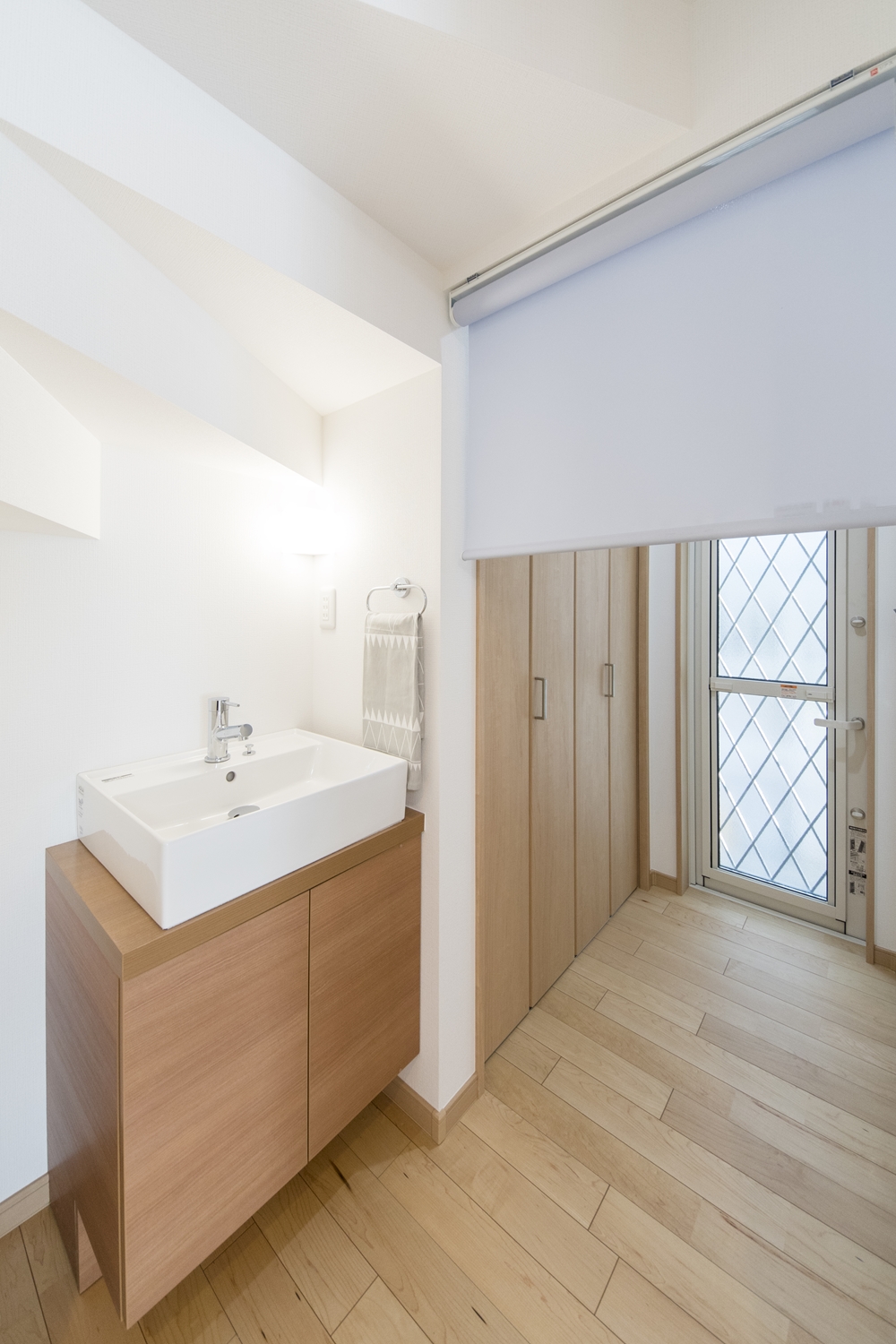 1F手洗い/スタイリッシュでおしゃれなデザインです。浴室や洗面室、洗濯機は2階にある為、気兼ねなくお客様を通せます。