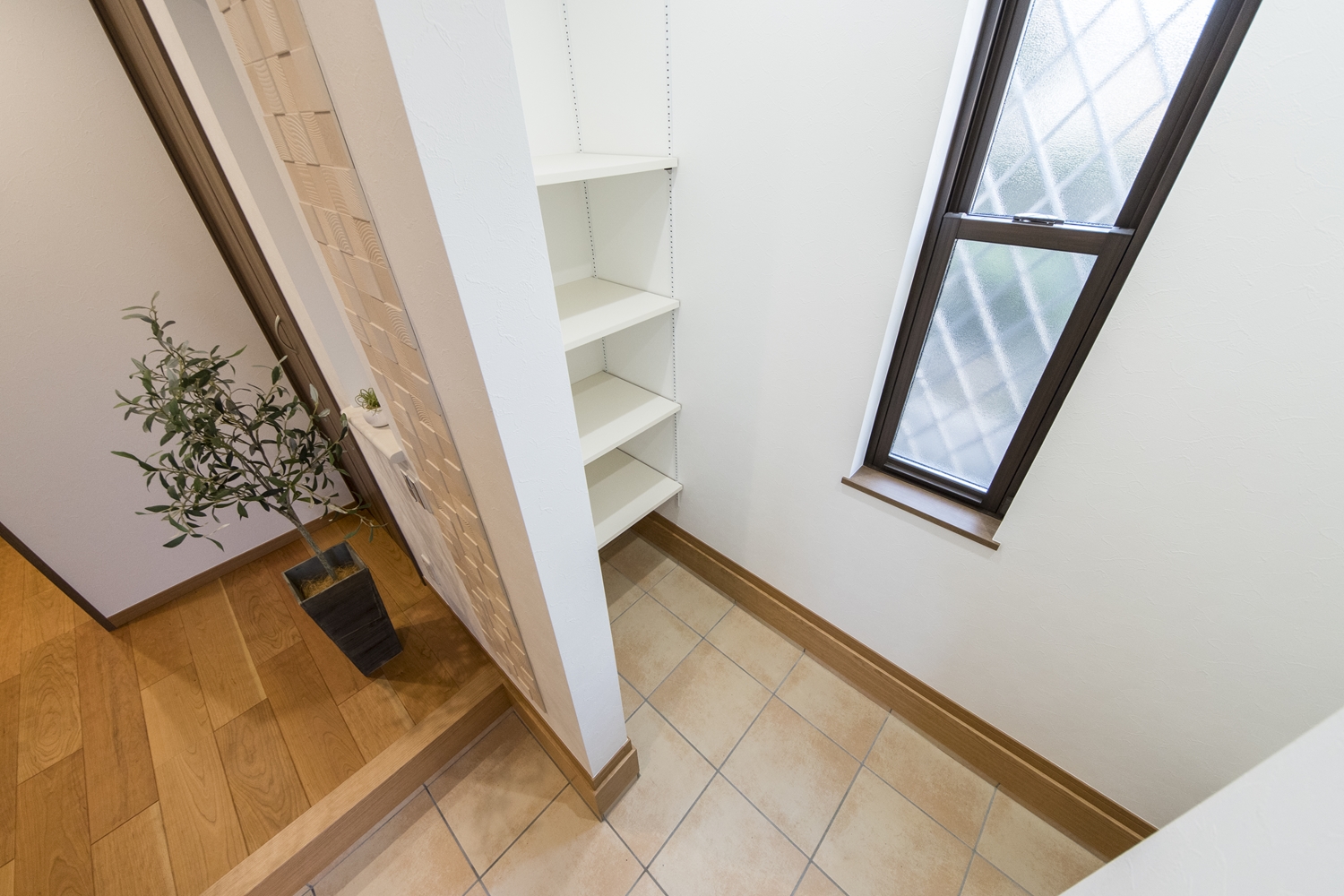 二世帯兼用のシューズクロークを設えて機能的な玄関になりました。