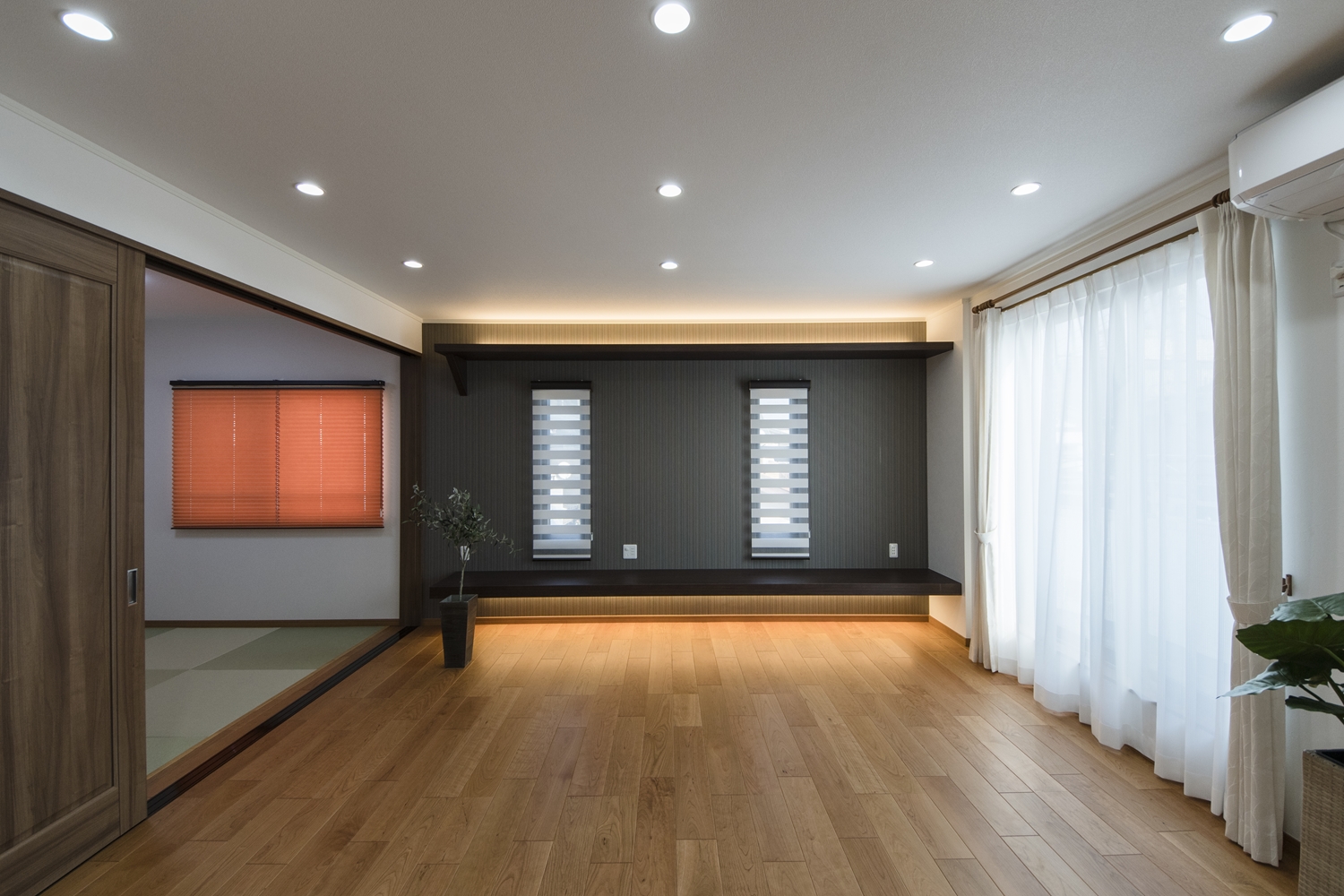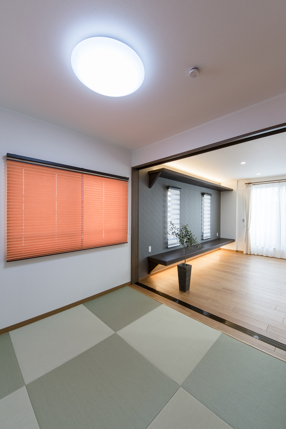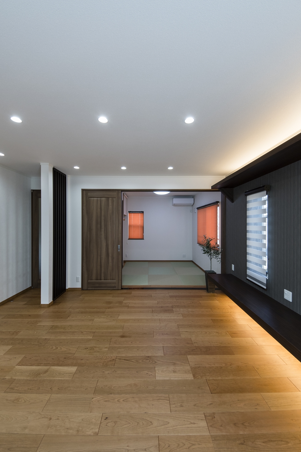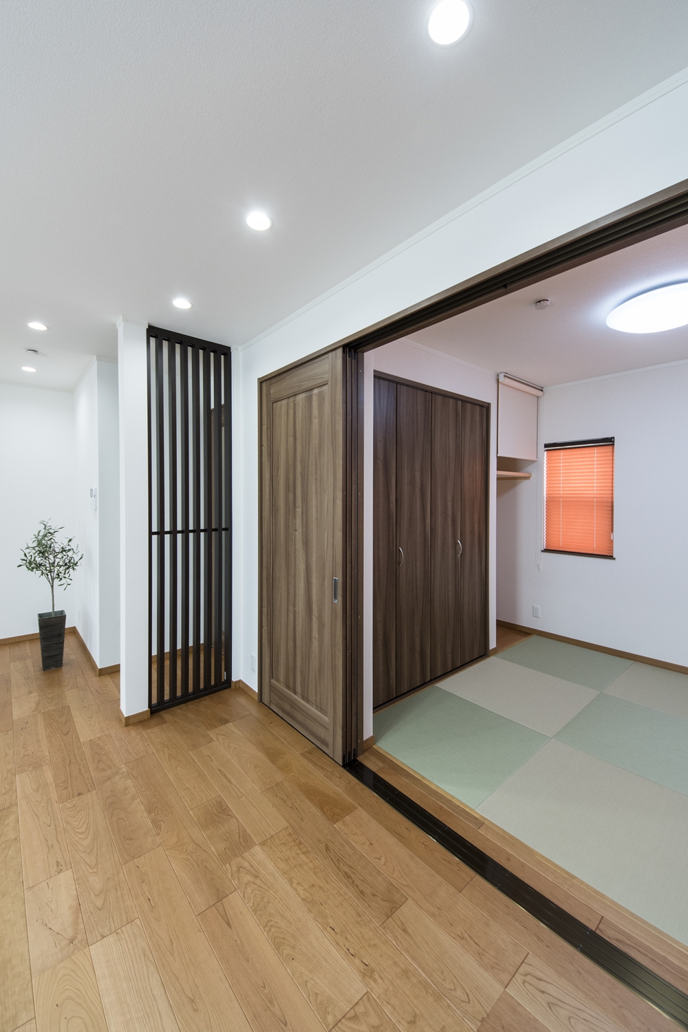 扉を開けてひとつなぎになった畳敷き洋室はリビングに開放感をプラスしてくれます。