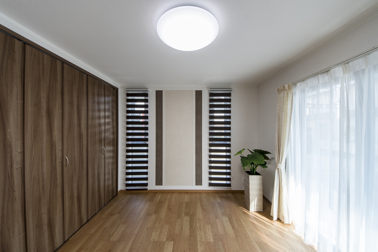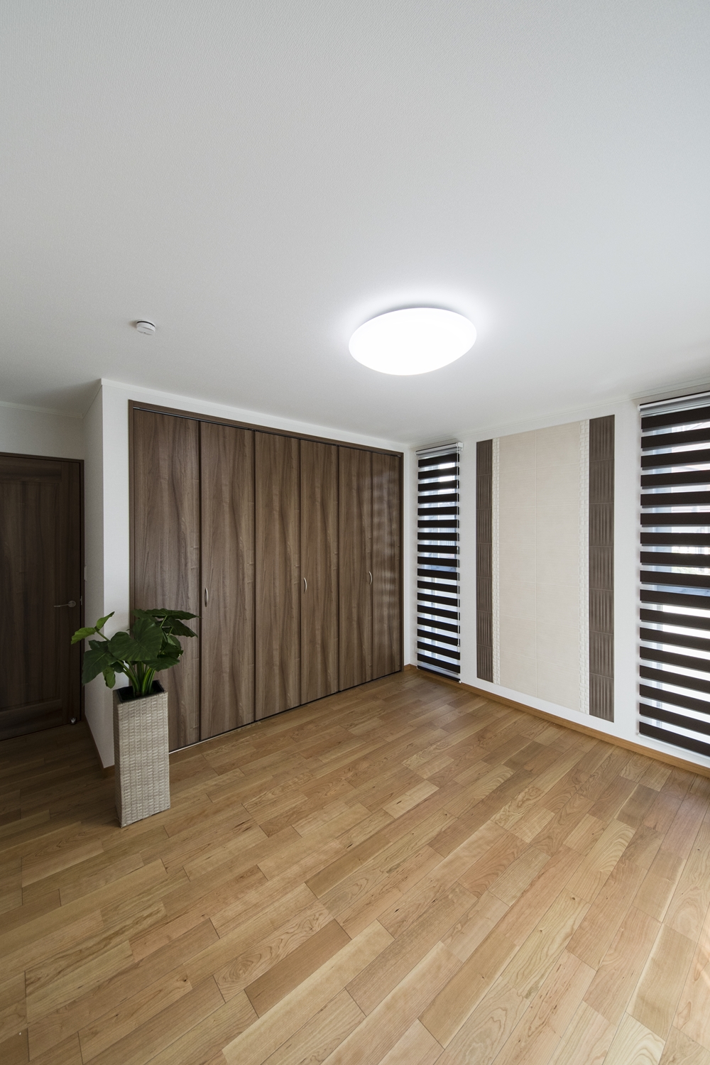 1F洋室(親世帯)/温かみのあるナチュラルな配色の室内空間。