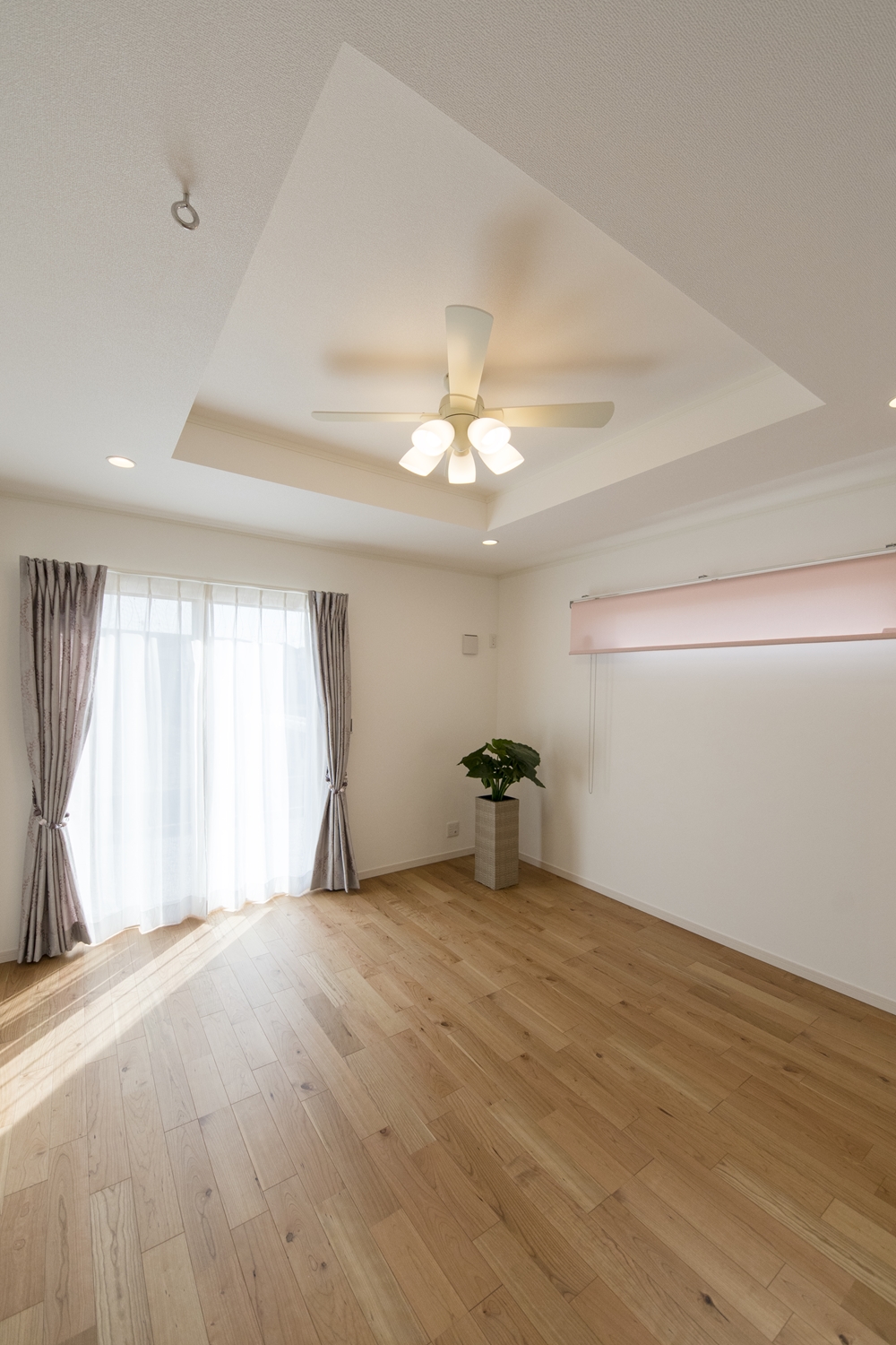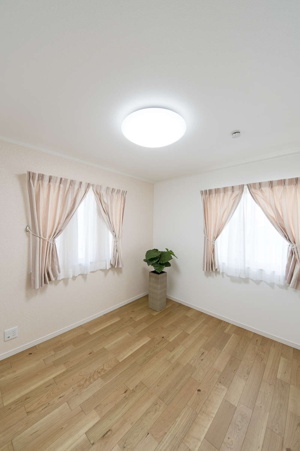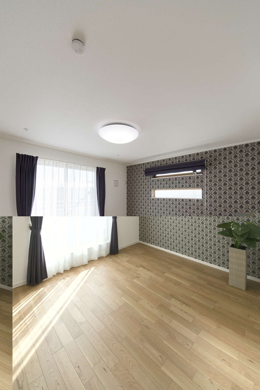 2階洋室/エレガントなデザインのクロスと二連の横長窓をアクセントにしました。