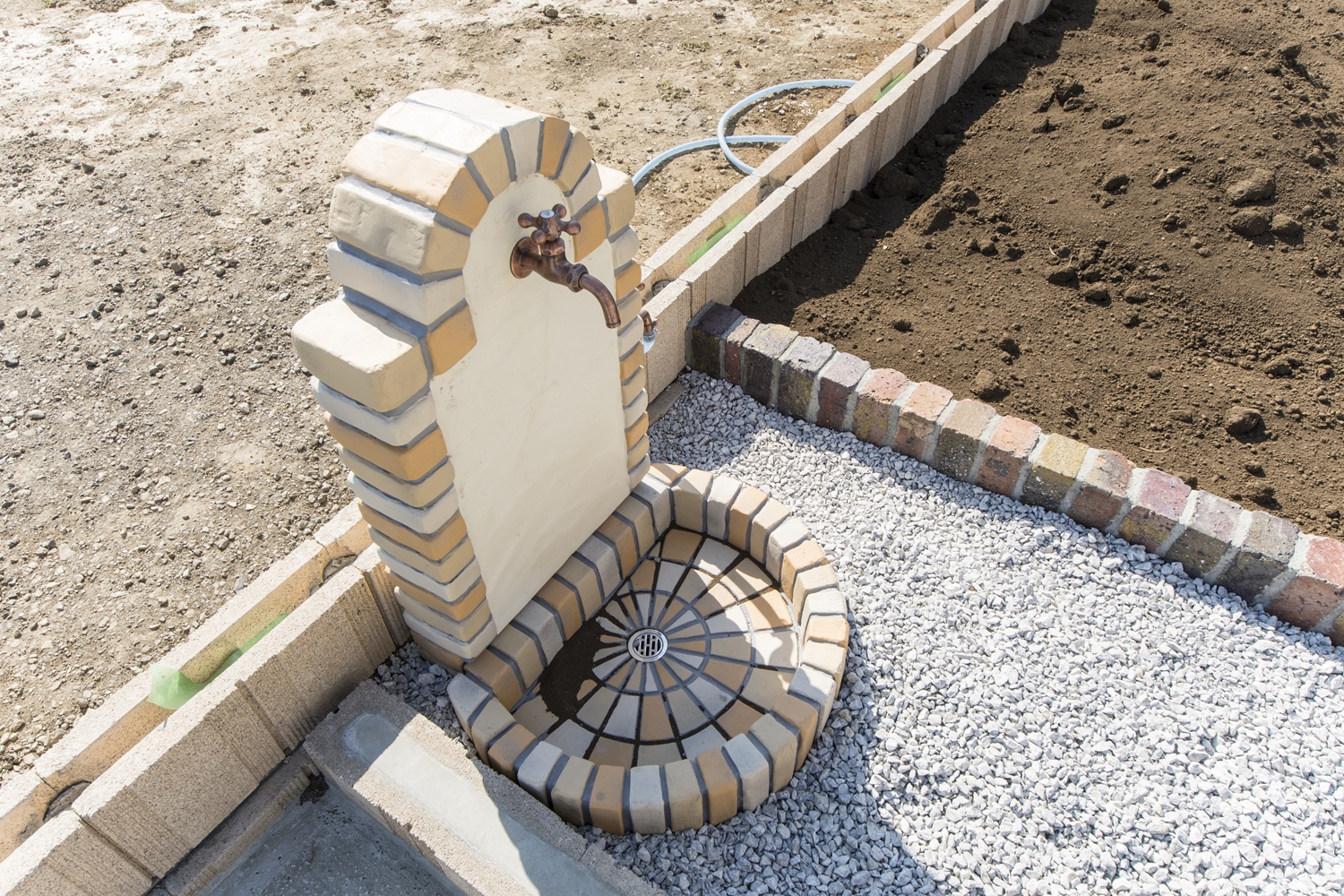 あたたかなレンガの表情を持った立水栓が、ガーデンに美しく溶け込みます。
