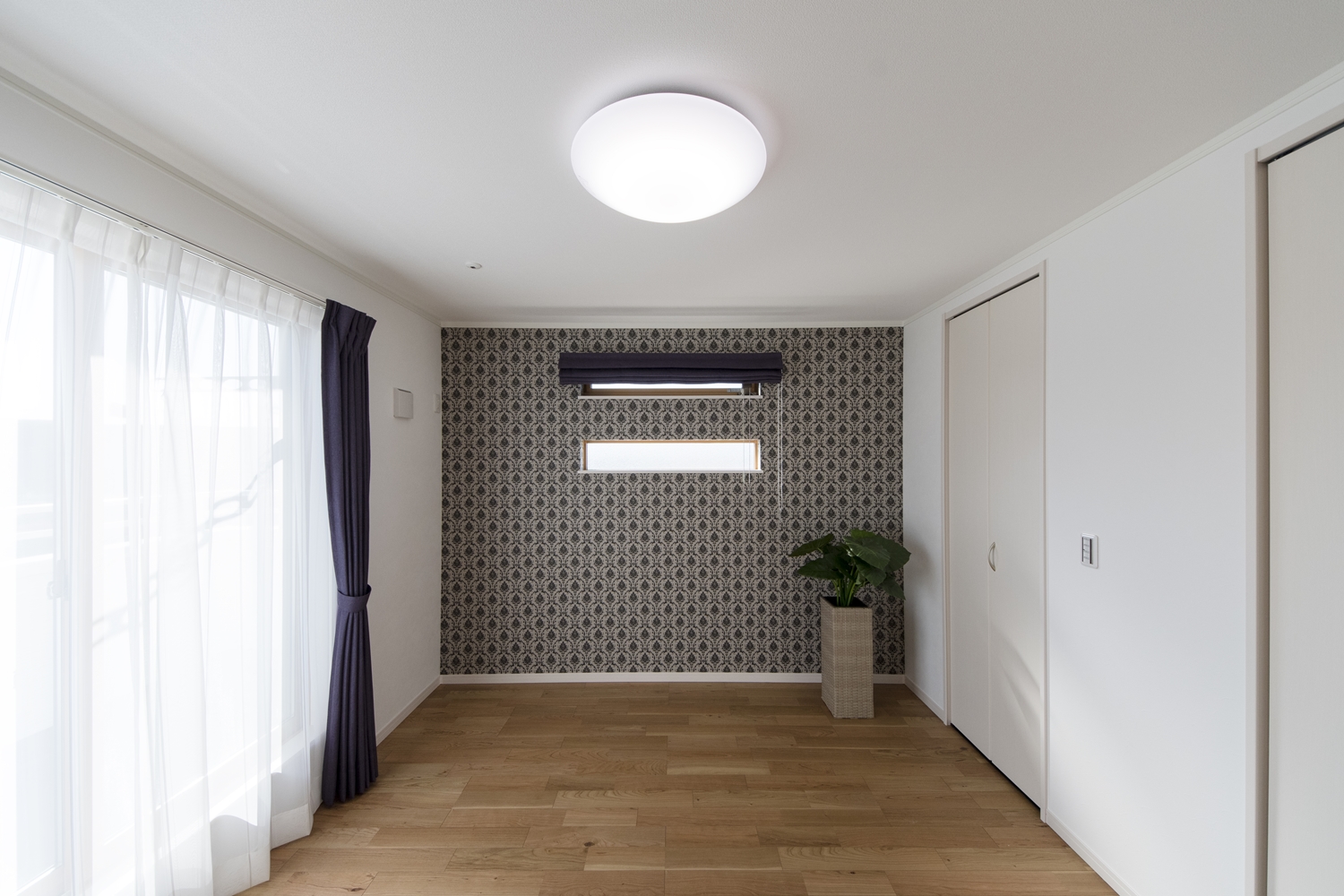 2階洋室/エレガントなデザインのクロスと縦長窓をアクセントにしました。