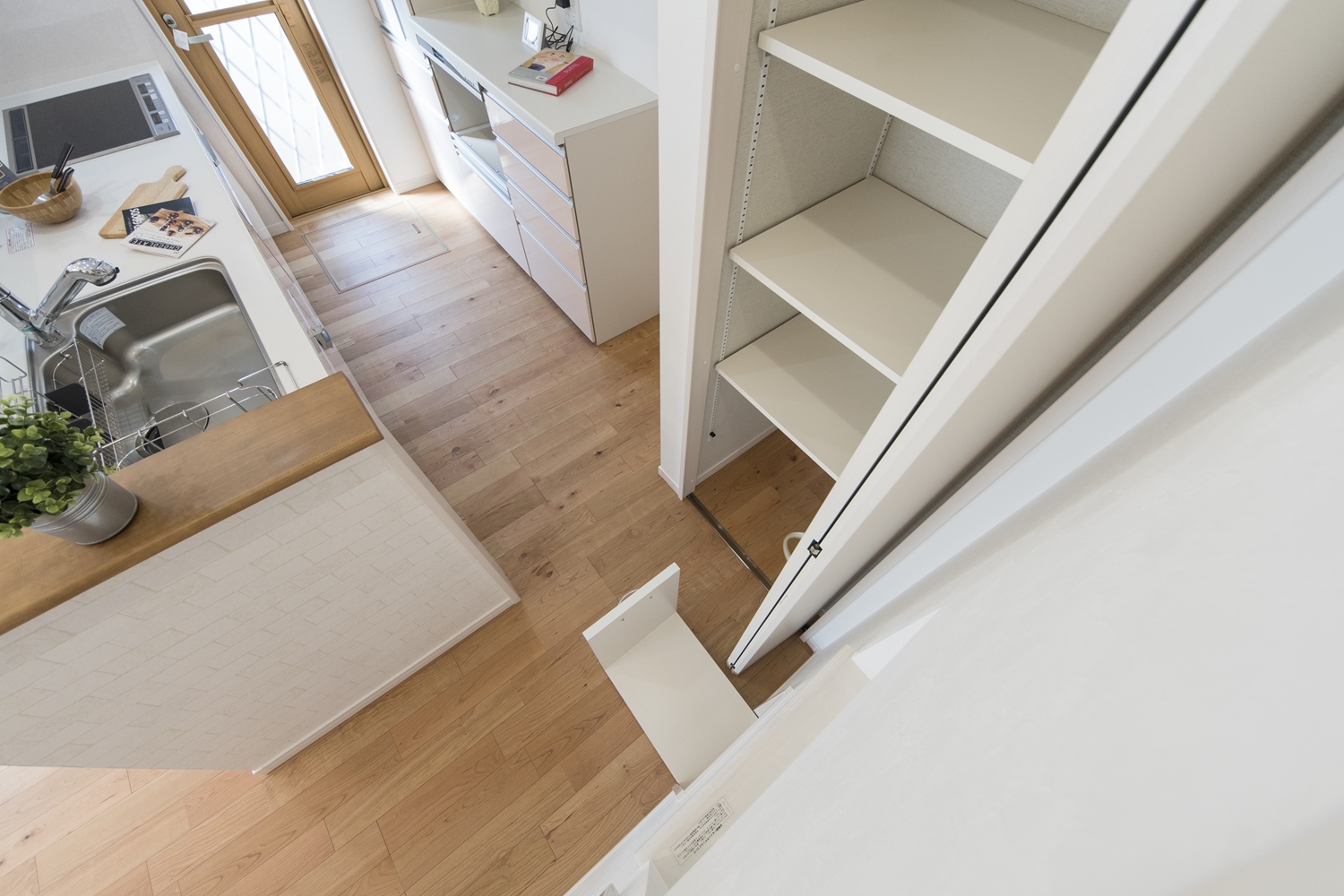 リビングを見渡せる対面式キッチン。家事をしながらご家族との会話も弾みます。