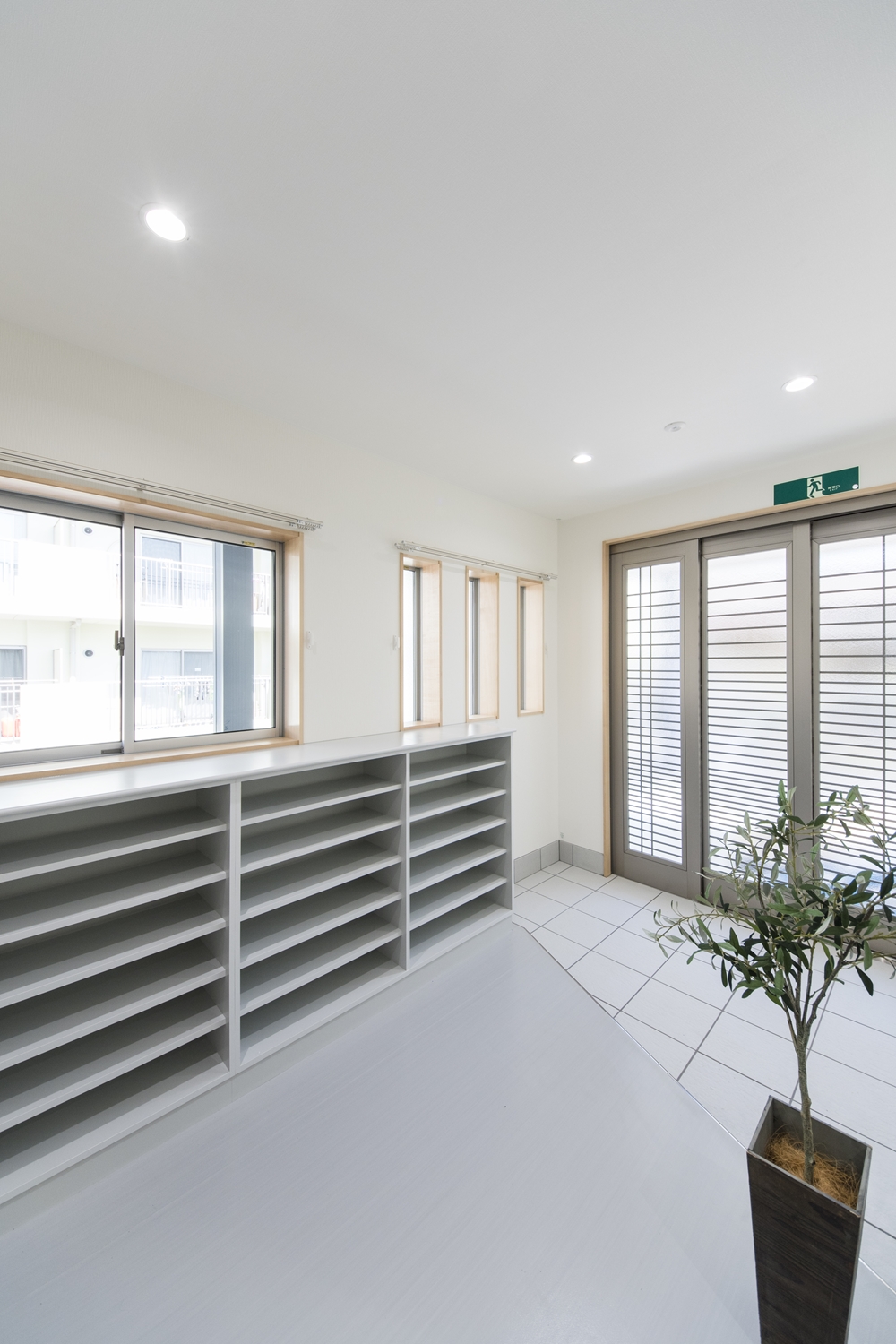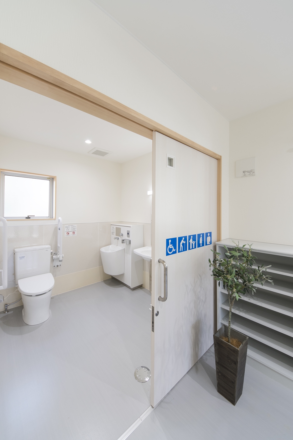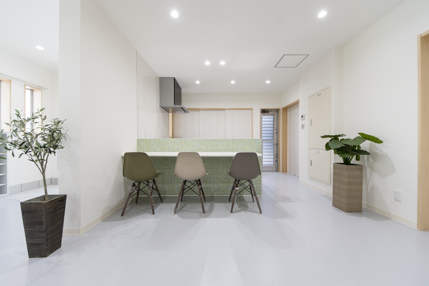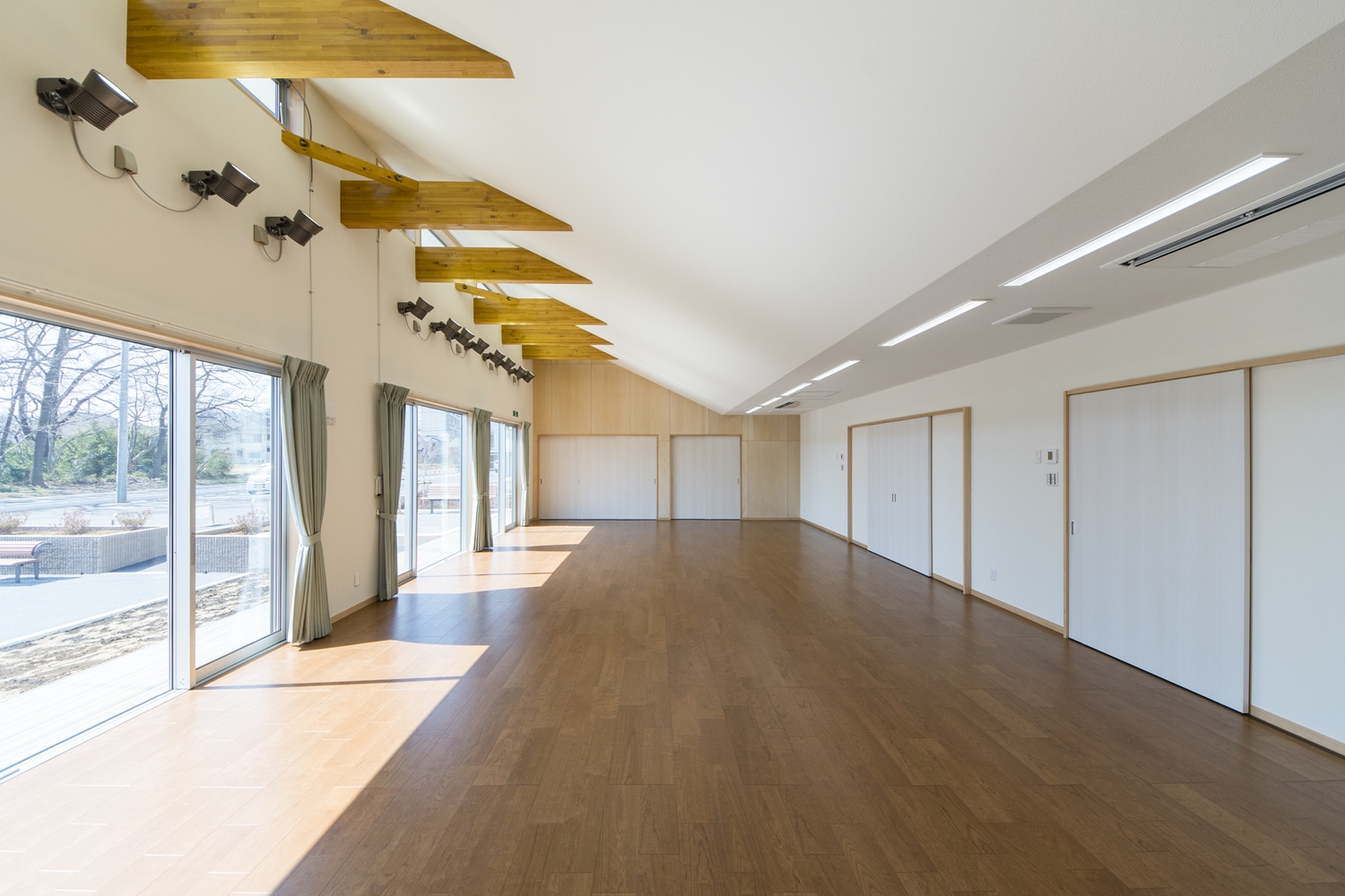 管理組合、自治会、老人会、子供会などの活動拠点となるのはもちろん、ご高齢者をはじめ居住者の方々のふれあい、助け合いなどの交流を深め、サークル活動や趣味を楽しむ場としても使用できるよう、広々としたホール、カフェの様な空間、車いす対応のトイレを設置した快適で機能的な集会所の完成です。