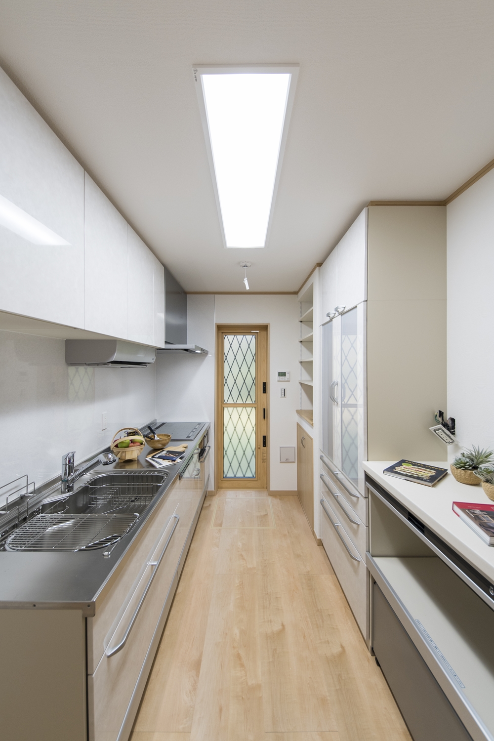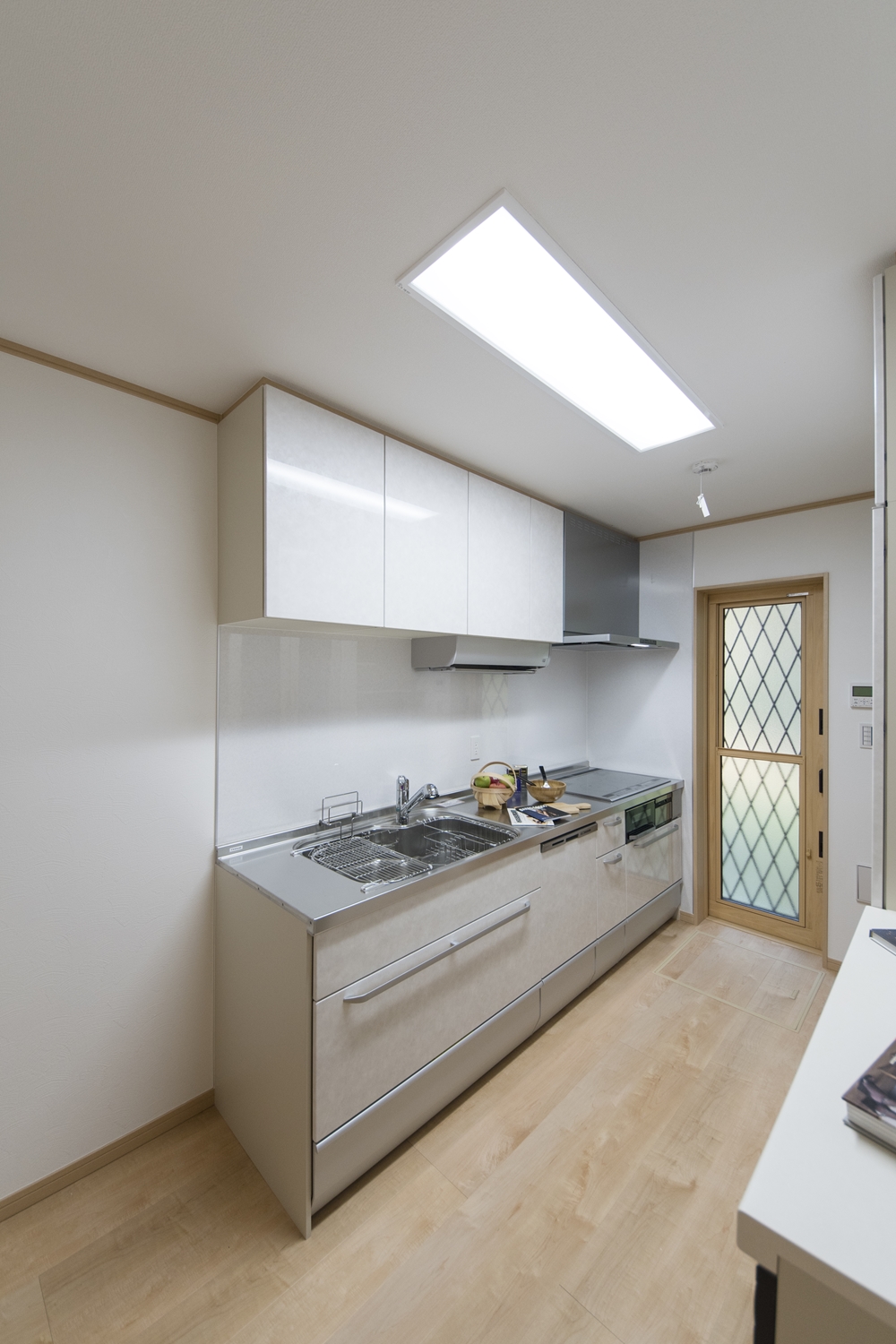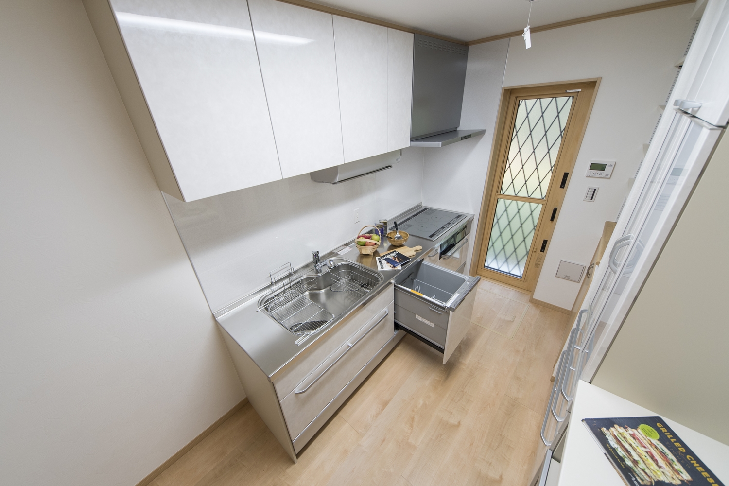キッチン/食器洗い乾燥機や、カップボード、吊戸棚を施した、見た目も使い勝手も優秀なキッチン。