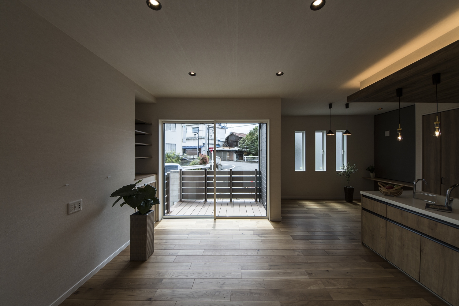 窓の外には、リビングから庭へ、庭からリビングへと「アウトドアリビング」として使う憧れのウッドデッキを設置して、カフェテラスの様な空間になりました。