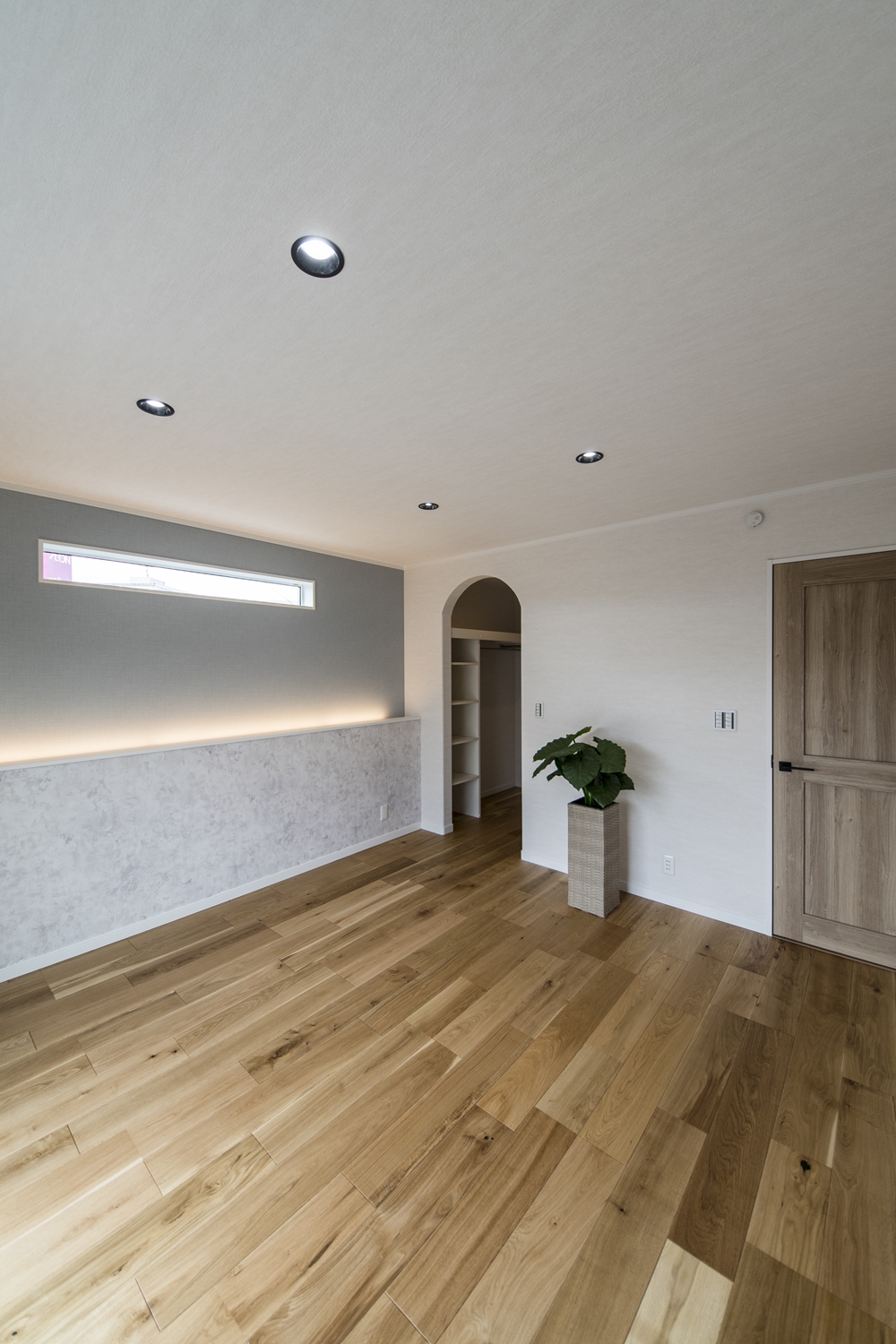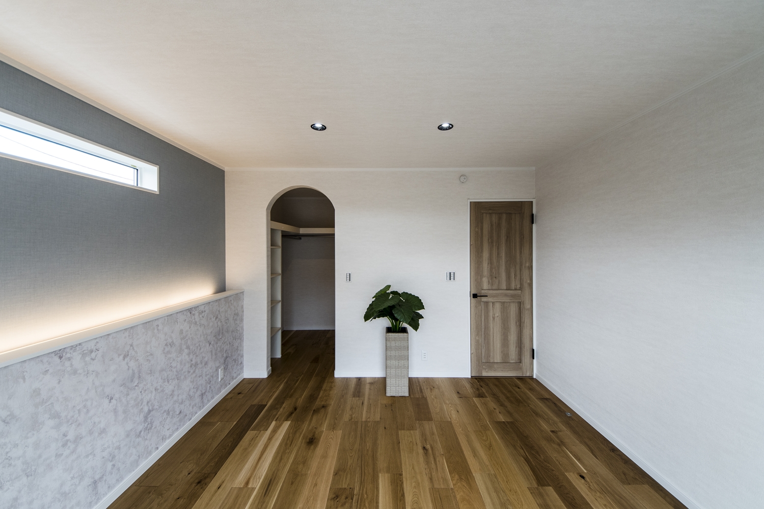2F寝室/アーチ型入口が可愛らしい、オープンタイプのウォークインクローゼットを設えました。