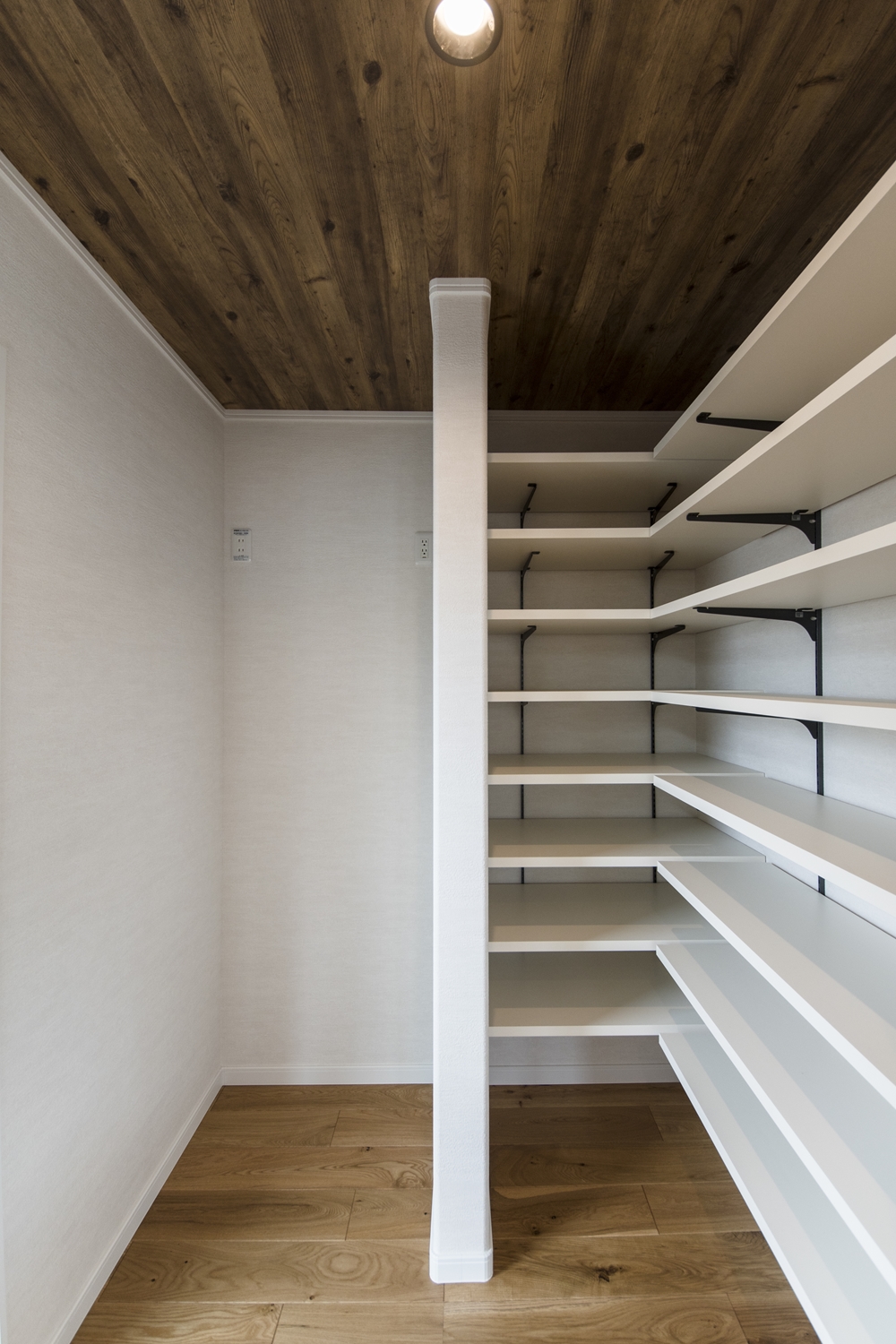 パントリー/週末にまとめ買いをした食材、お手製の果実酒、お客さま用の食器類、お気に入りの調味調のストックなど…たくさん収納できて嬉しい♪