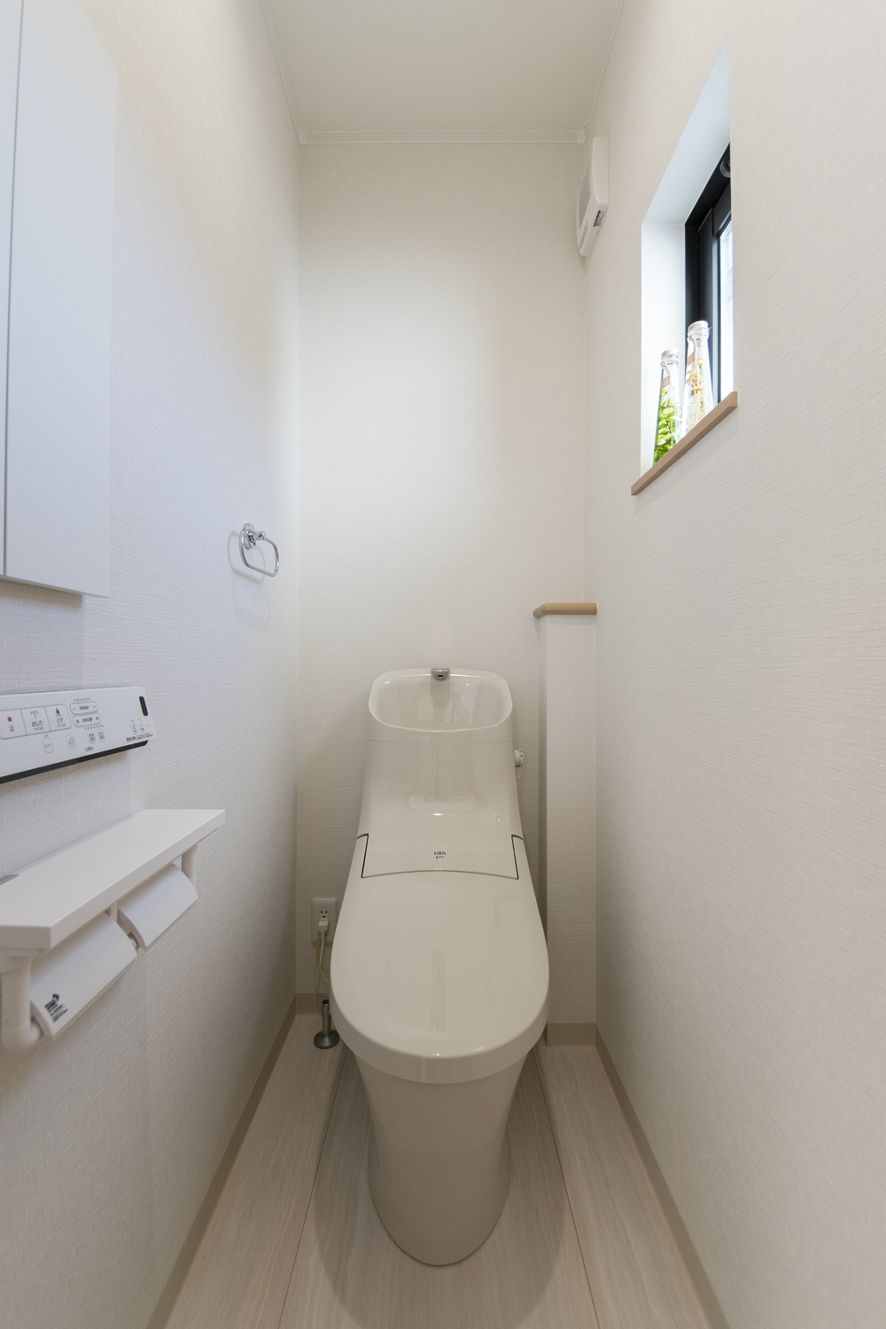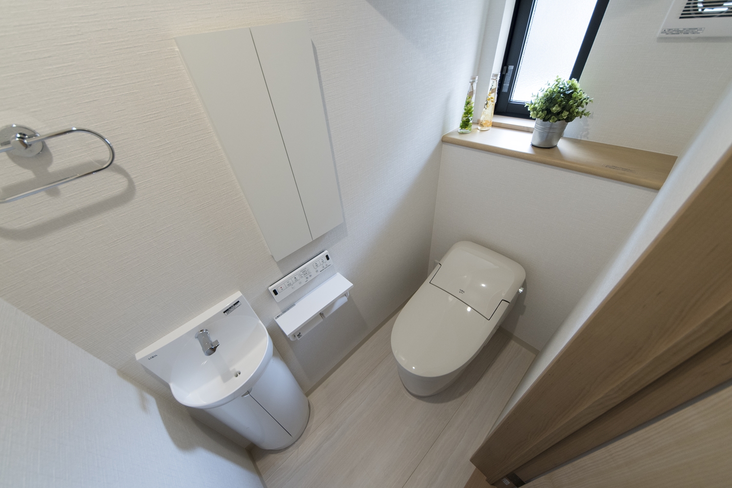 1階トイレ/タンクレスタイプで広々快適な空間。独立タイプの手洗いを設置してお客様をおもてなしします。