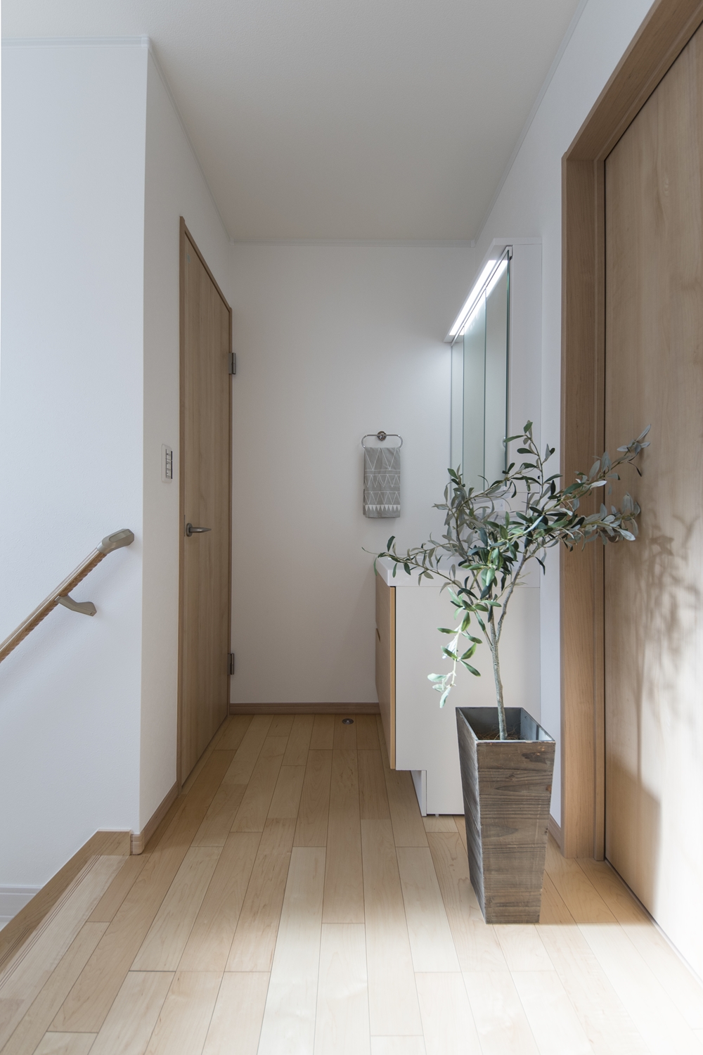 2Fにも洗面化粧台を設えました。あわただしい朝でも2台目の洗面台を活用することで、家族と被らず身支度がスムーズに!