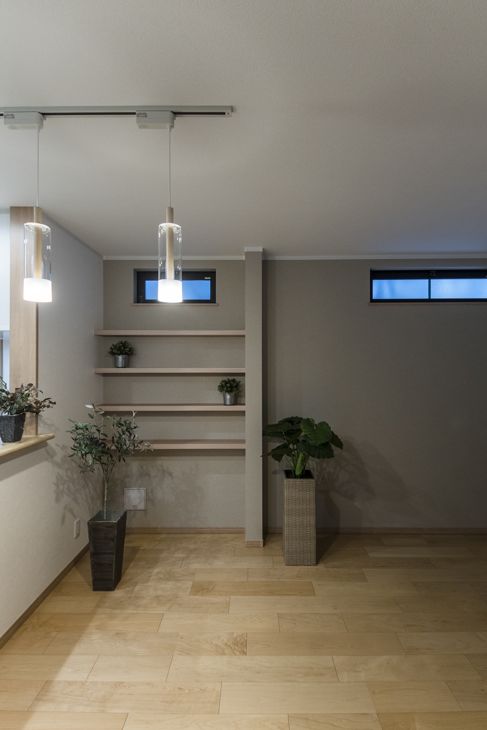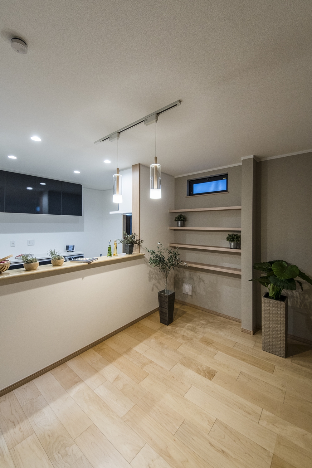 小物などをおしゃれにディスプレイできるニッチカウンターを設置しました。