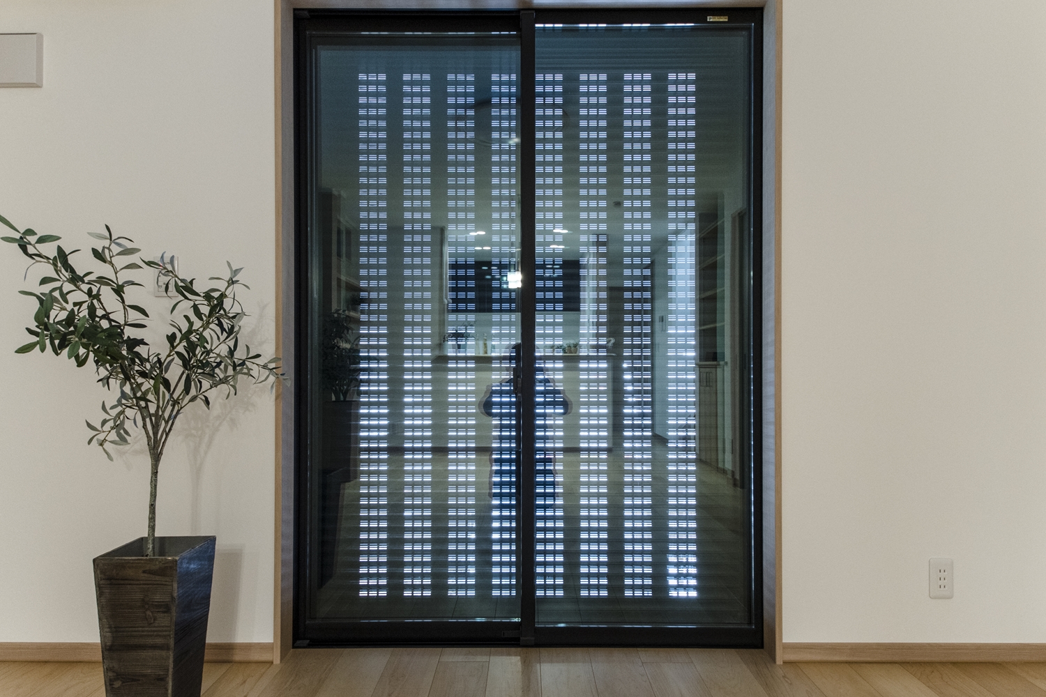 プライバシーを保護しながら、心地よい風を採り入れ、直射日光を遮りながらほどよい光を採り入れる電動シャッターを設置しました。