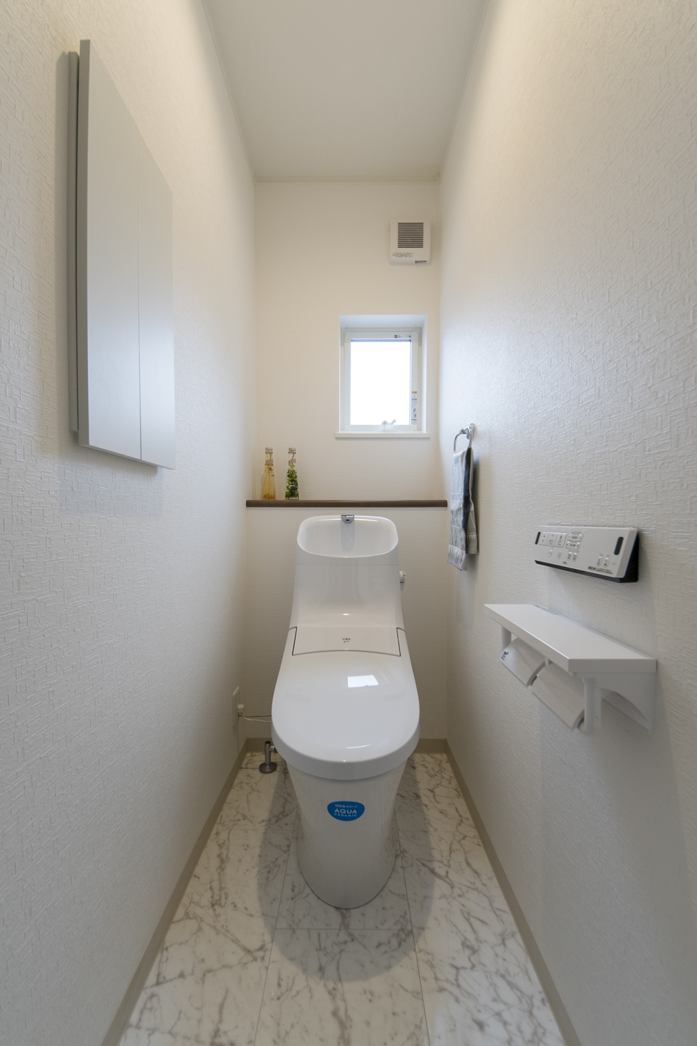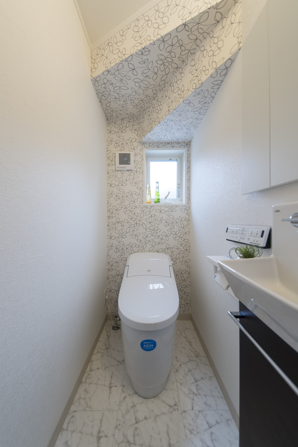 1階トイレ/リーフ柄のアクセントクロスが素敵な清潔感のあるトイレ。