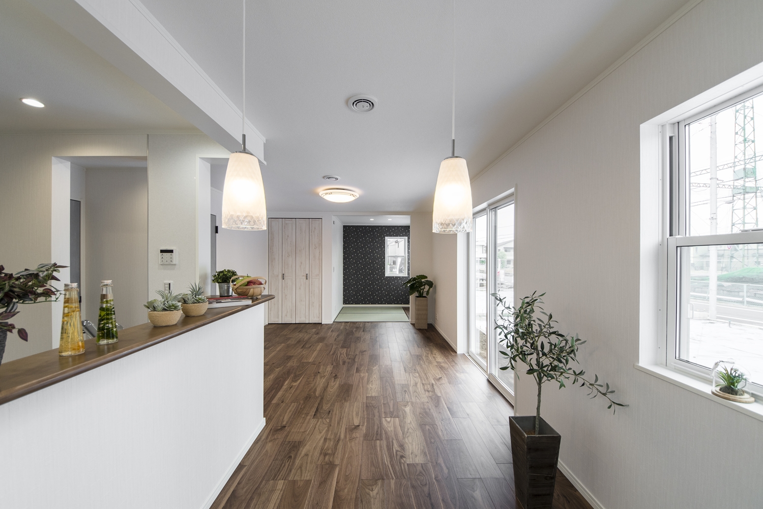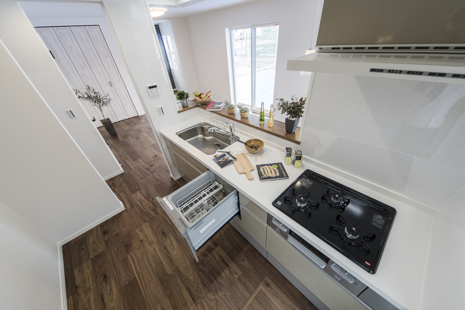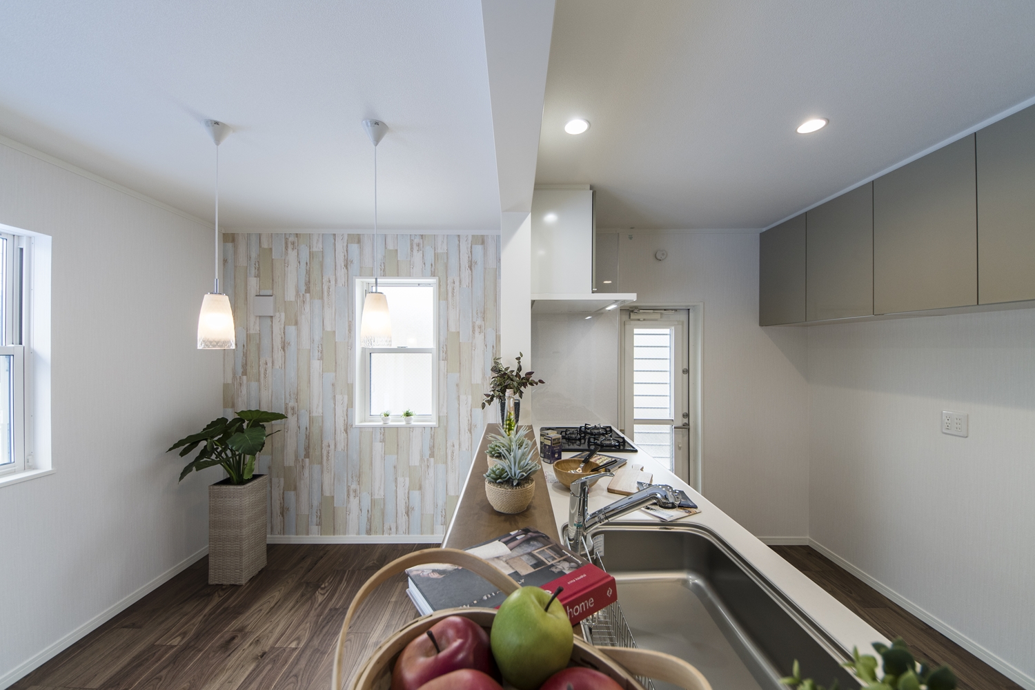 家族の距離が近くなる対面式キッチン。家族がいつも傍に居られる安心感が生まれます。