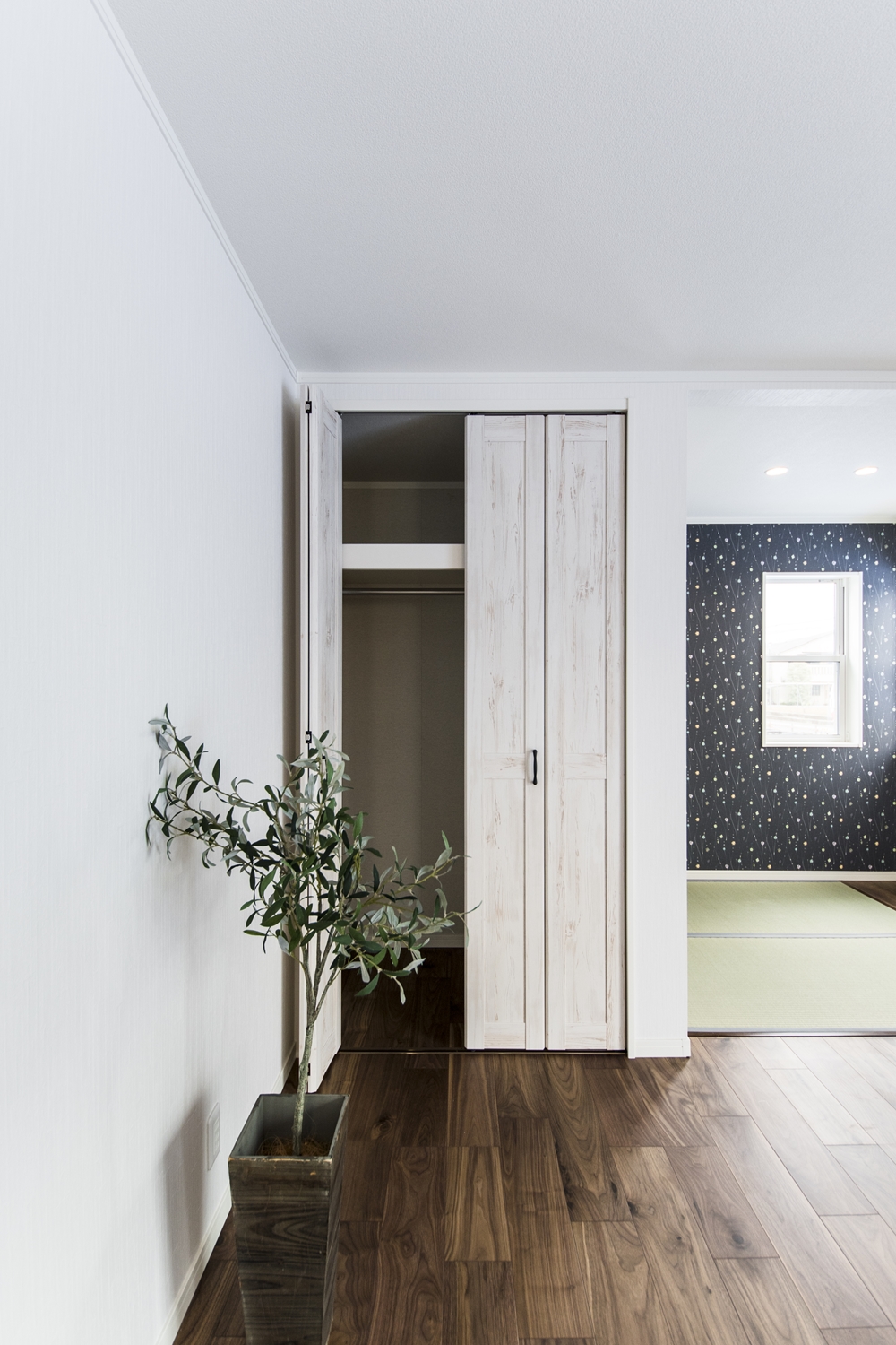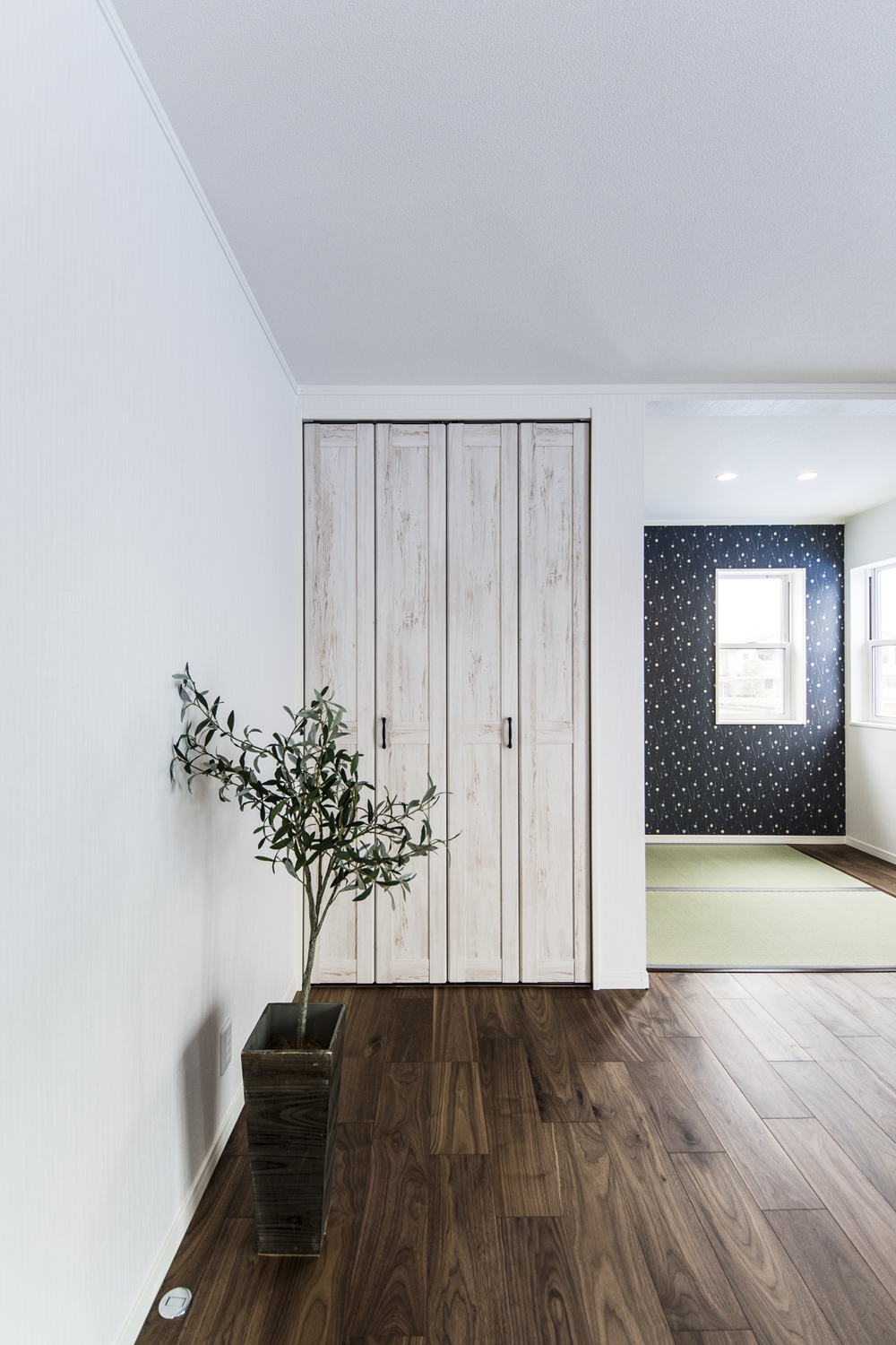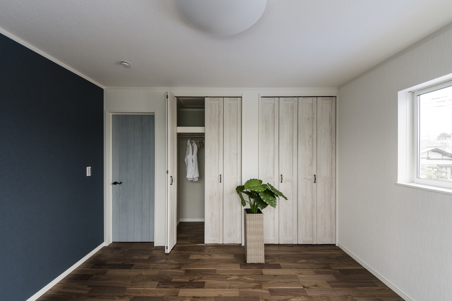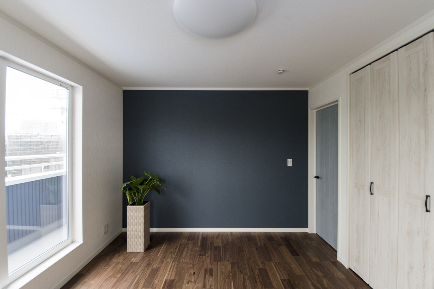 2階洋室/ネイビーのアクセントクロスが空間を引き締め、スタイリッシュで洗練された空間を演出。