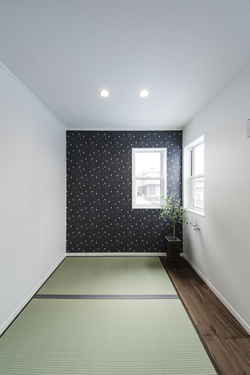 ゴロンっと横になれる畳敷きスペースは、ネイビーのクロスをアクセントにしたモダンな空間です。