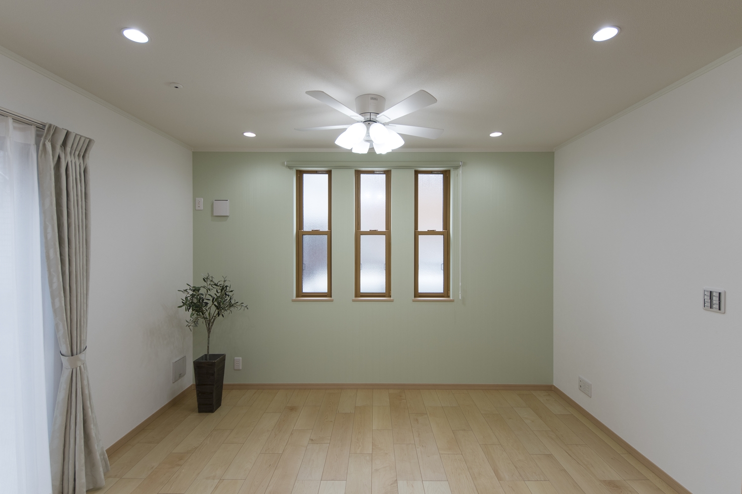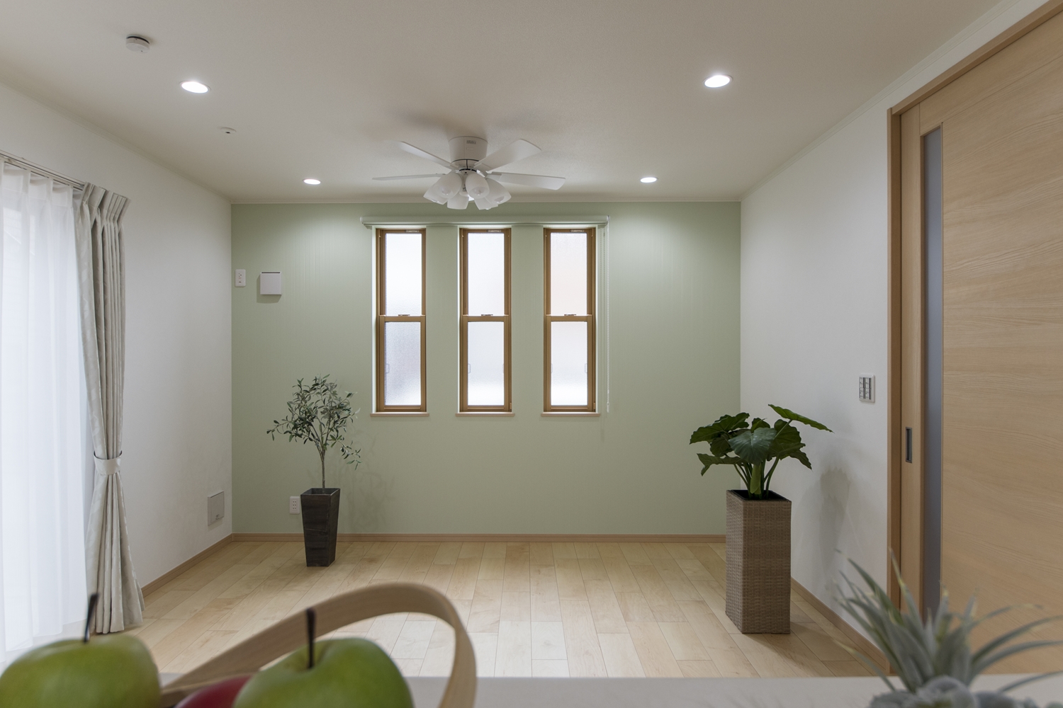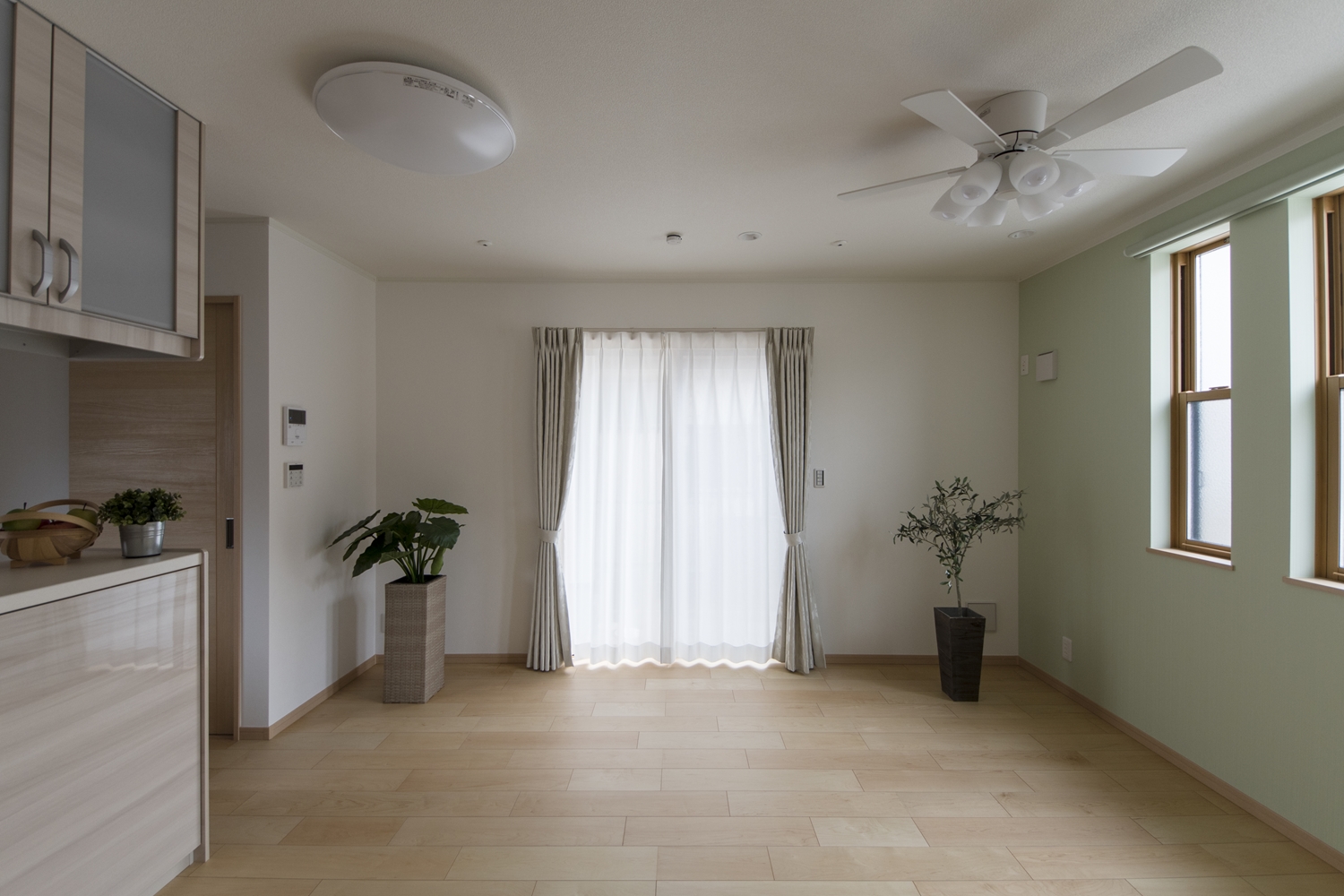 爽やかなグリーンのアクセントクロスが、リビングに安らぎを与えてくれます。