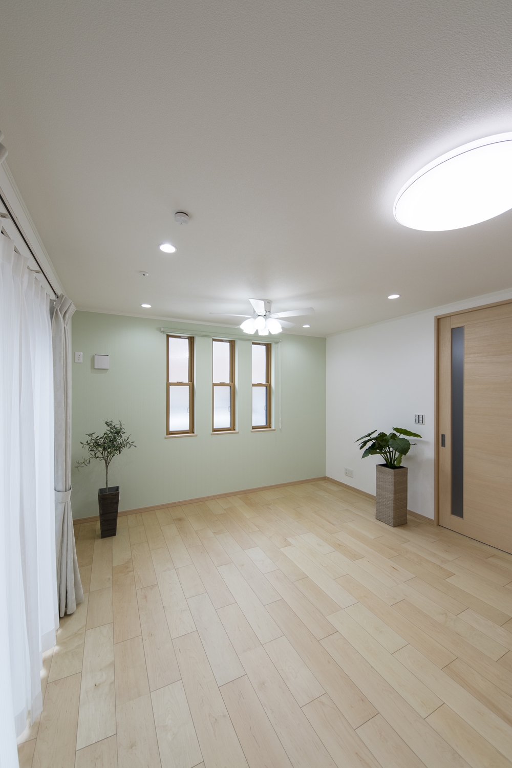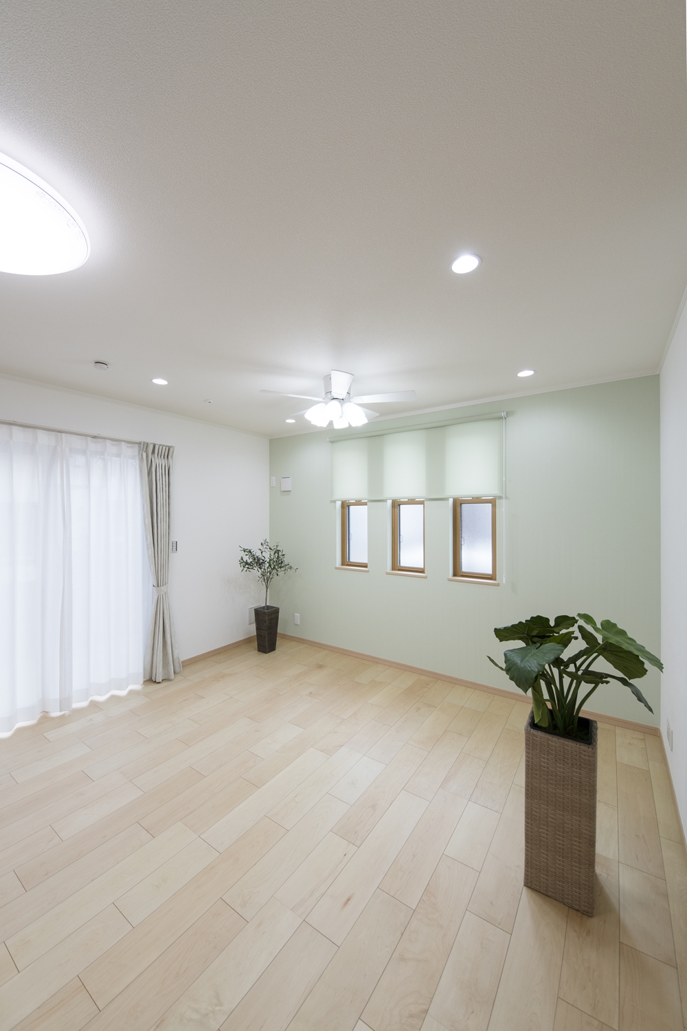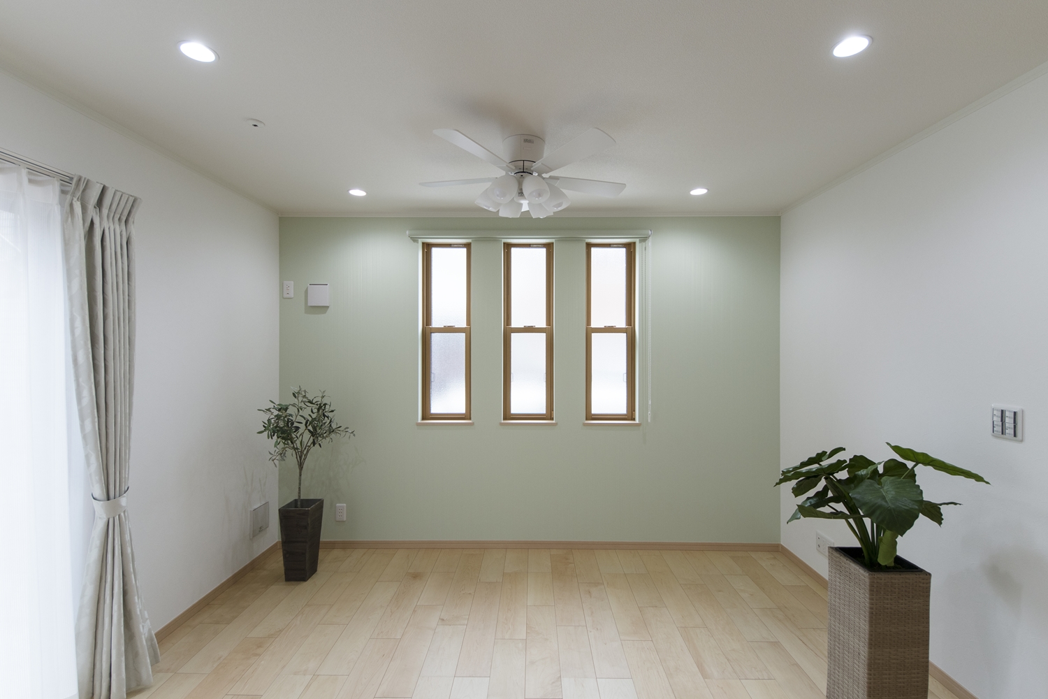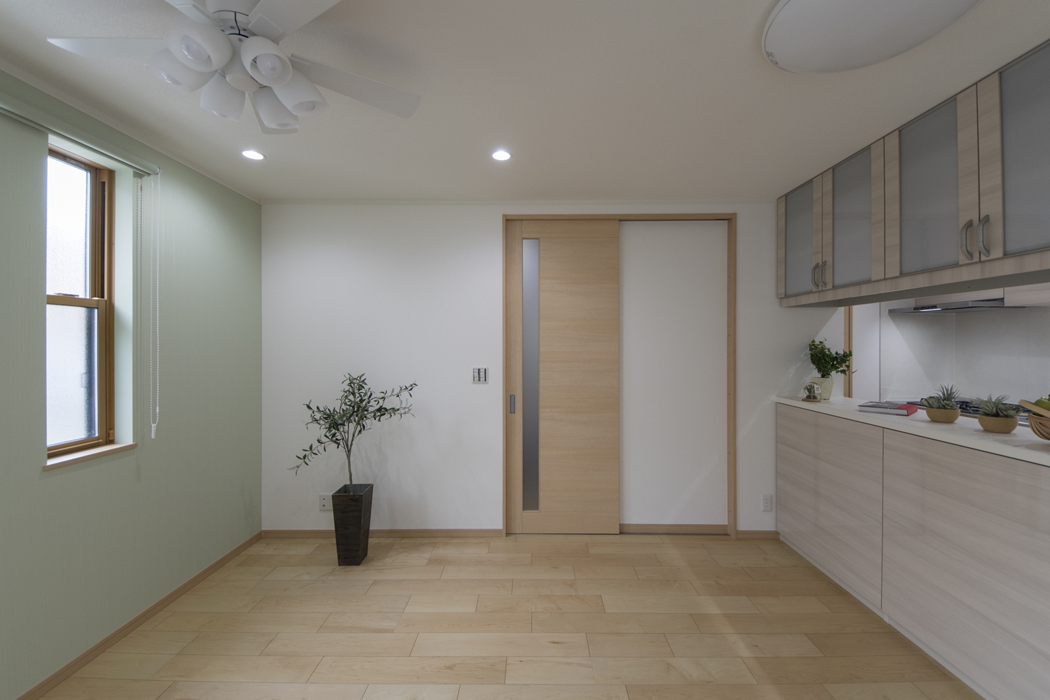 爽やかなグリーンのアクセントクロスが、リビングに安らぎを与えてくれます。
