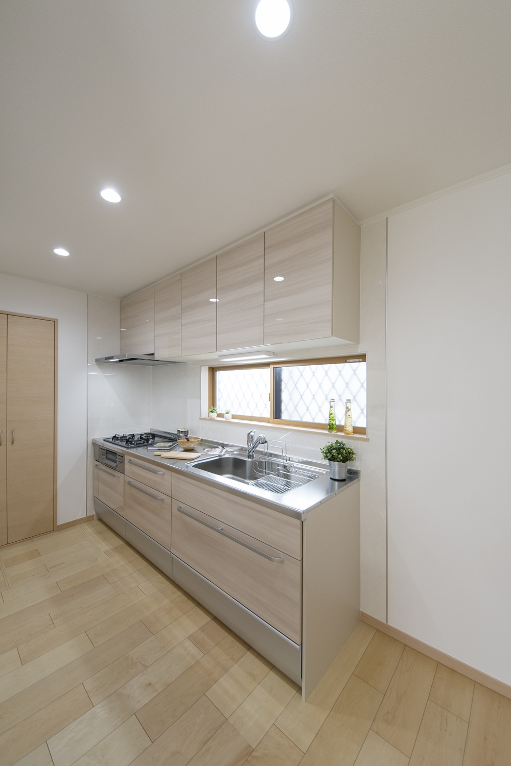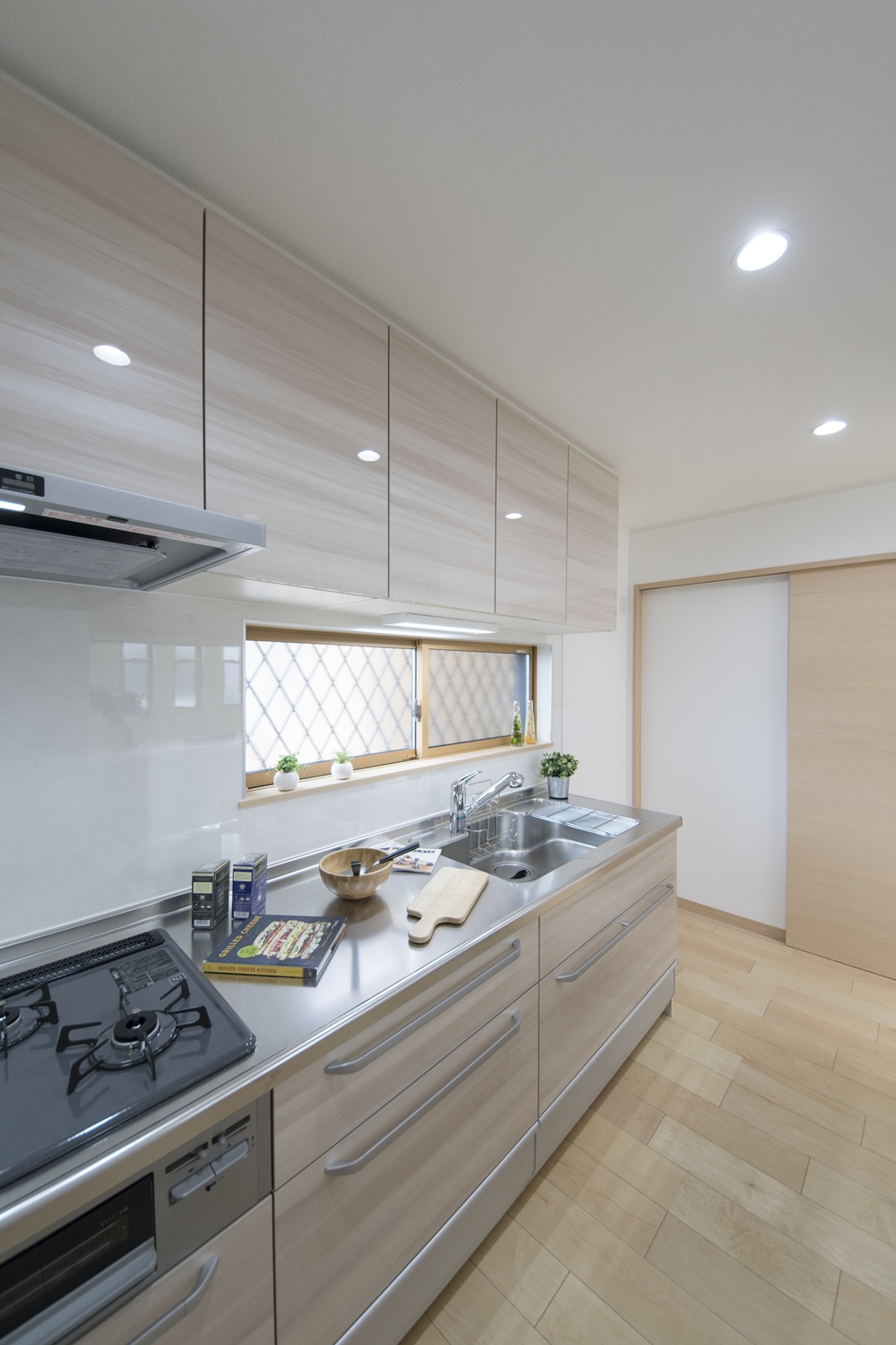 キッチンの扉は、木目調のベージュカラー。ナチュラルで温かみのある空間になりました。