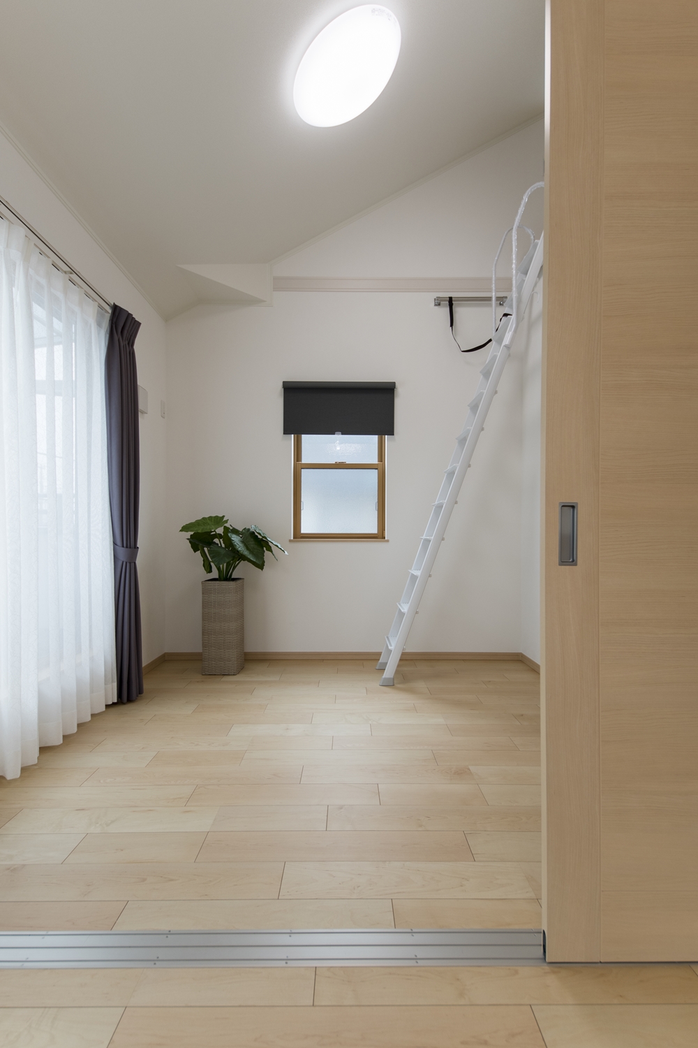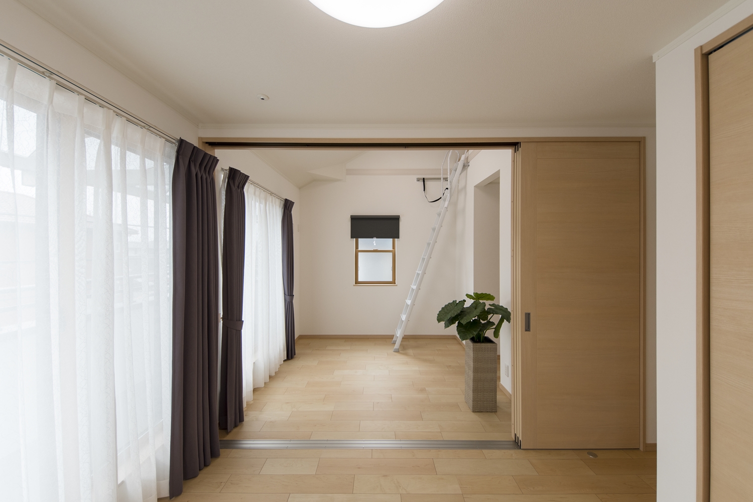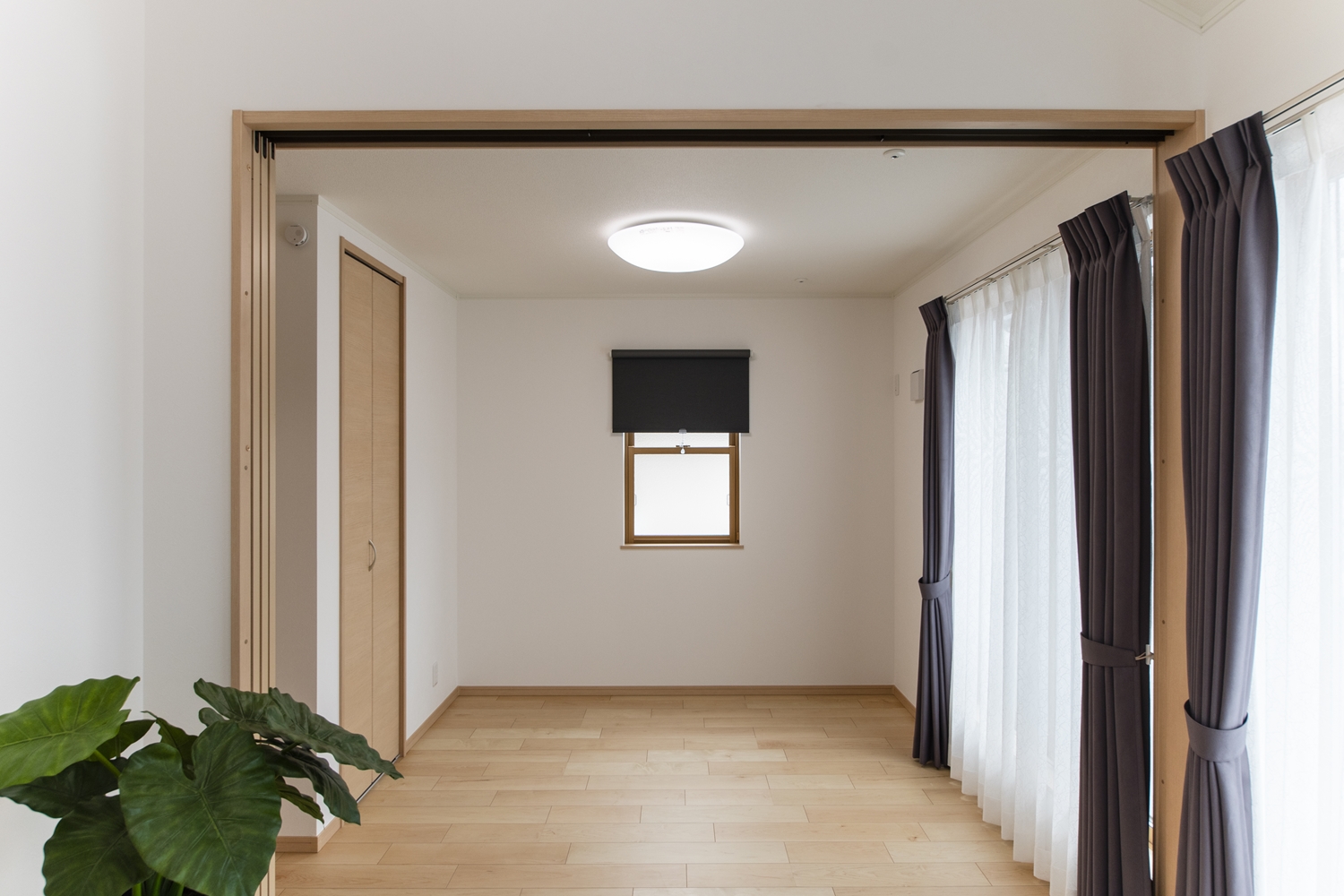 2つのお部屋の真ん中に引戸を設えました。開けるとお部屋がつながり開放的に。