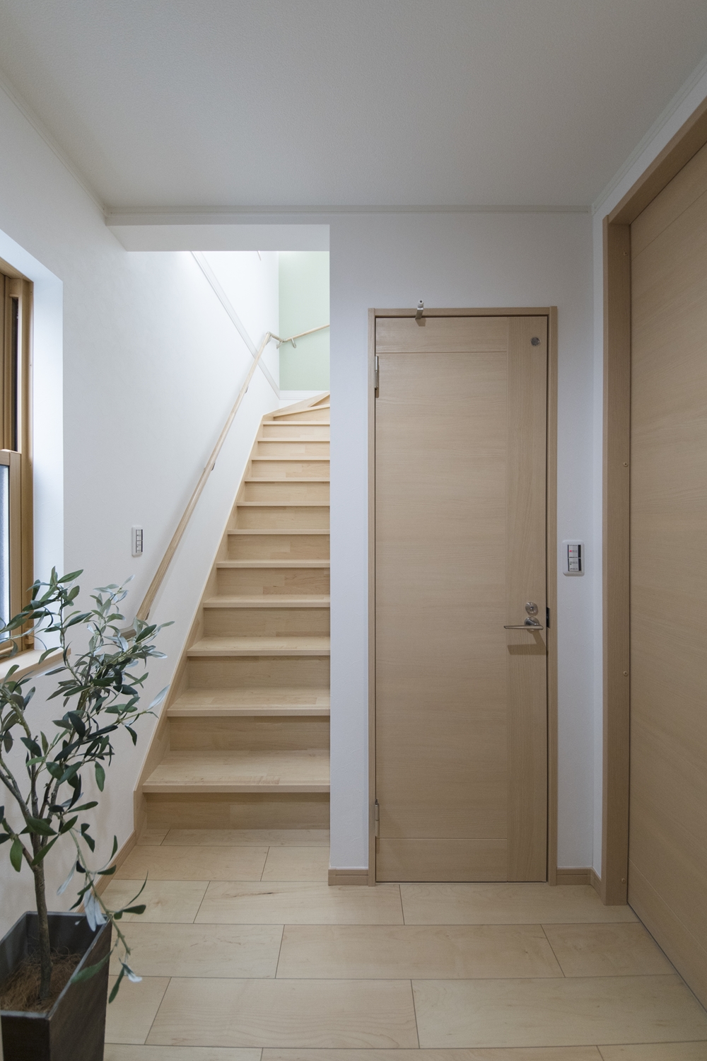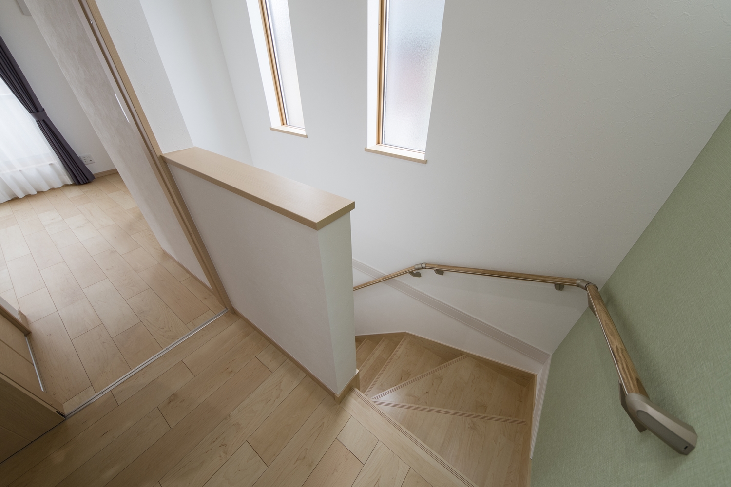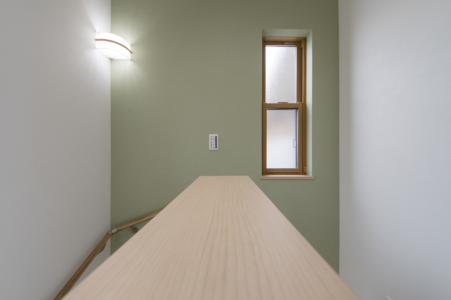 階段ホール/爽やかなグリーンのクロスをアクセントにした、優しい印象の階段ホール。