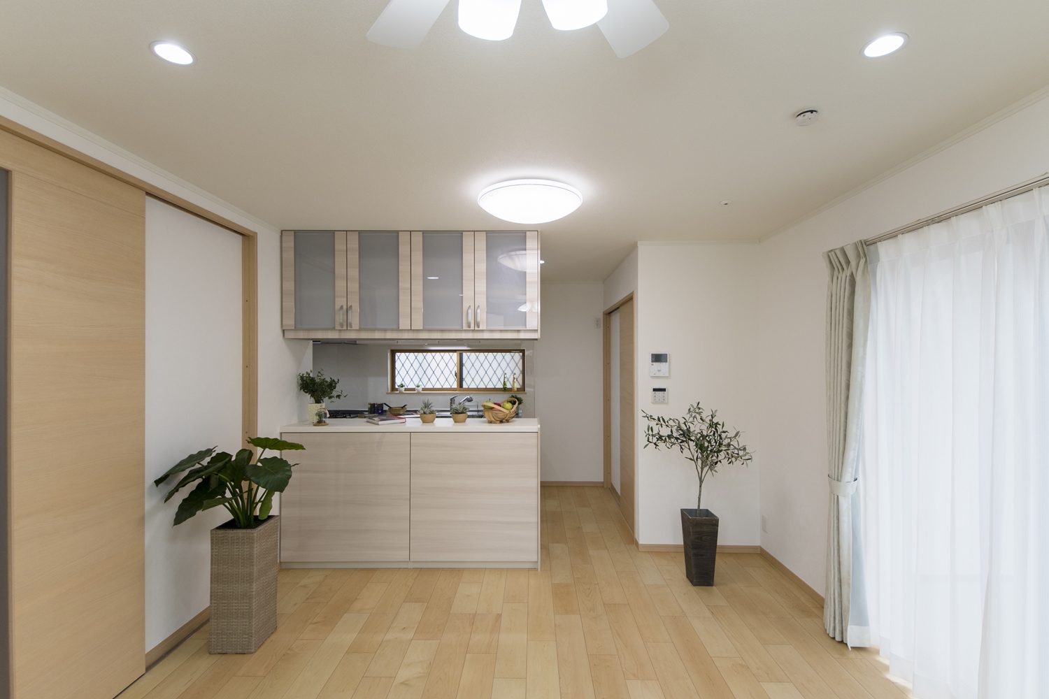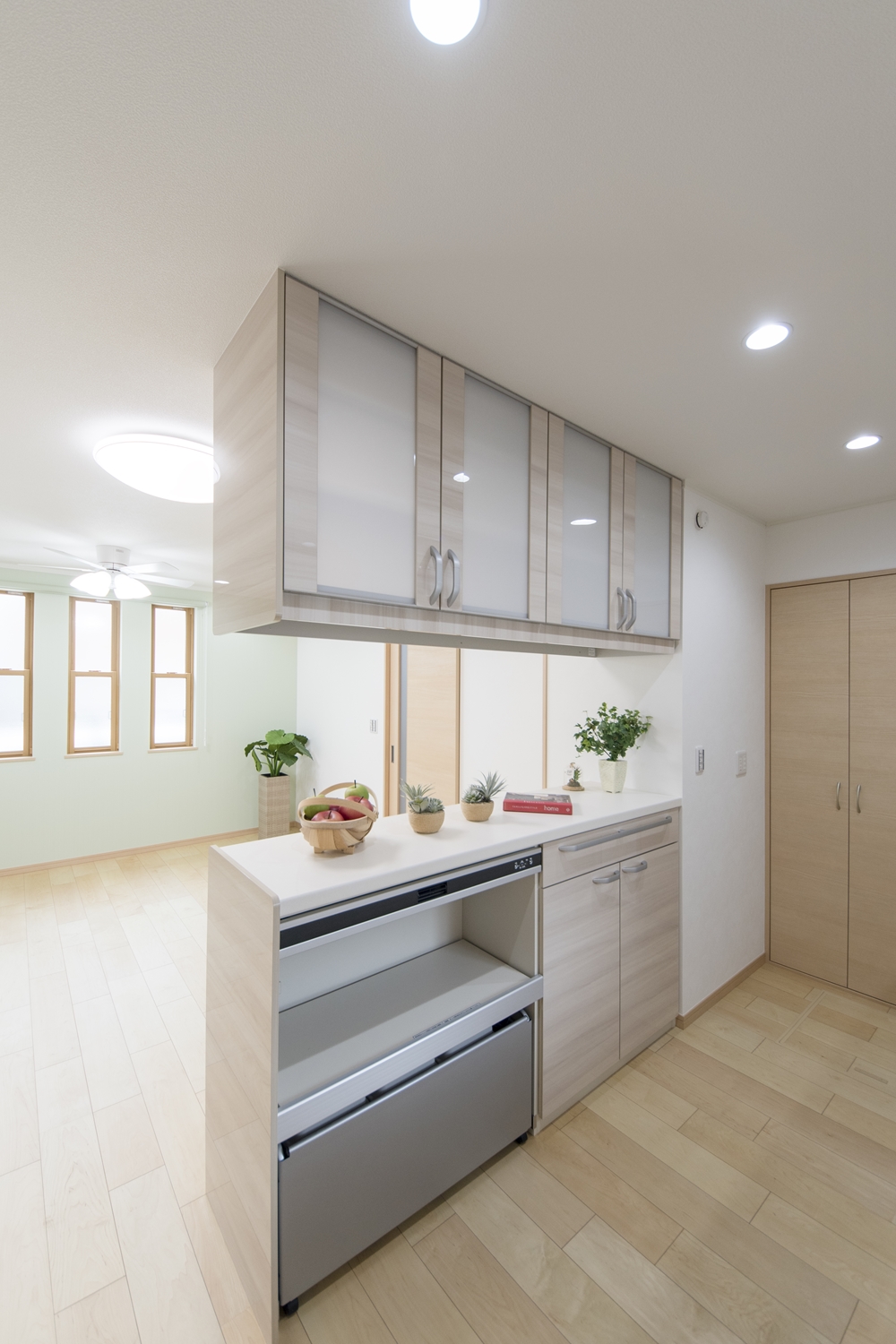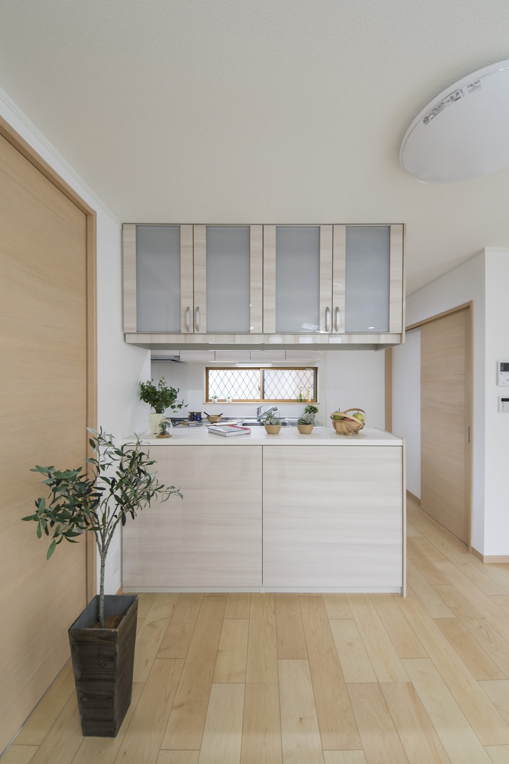 キッチンハッチ/ガラス扉はキッチン側からもリビング側からも使えてとっても便利!カウンターにはアイテムを飾ったりインテリアも楽しめます♪