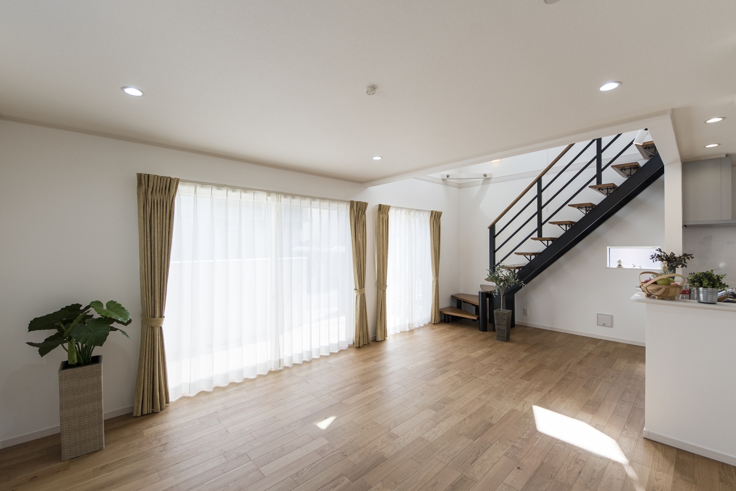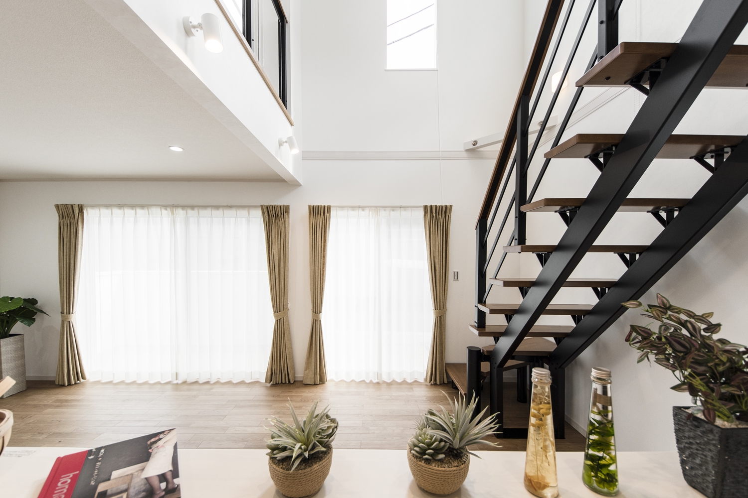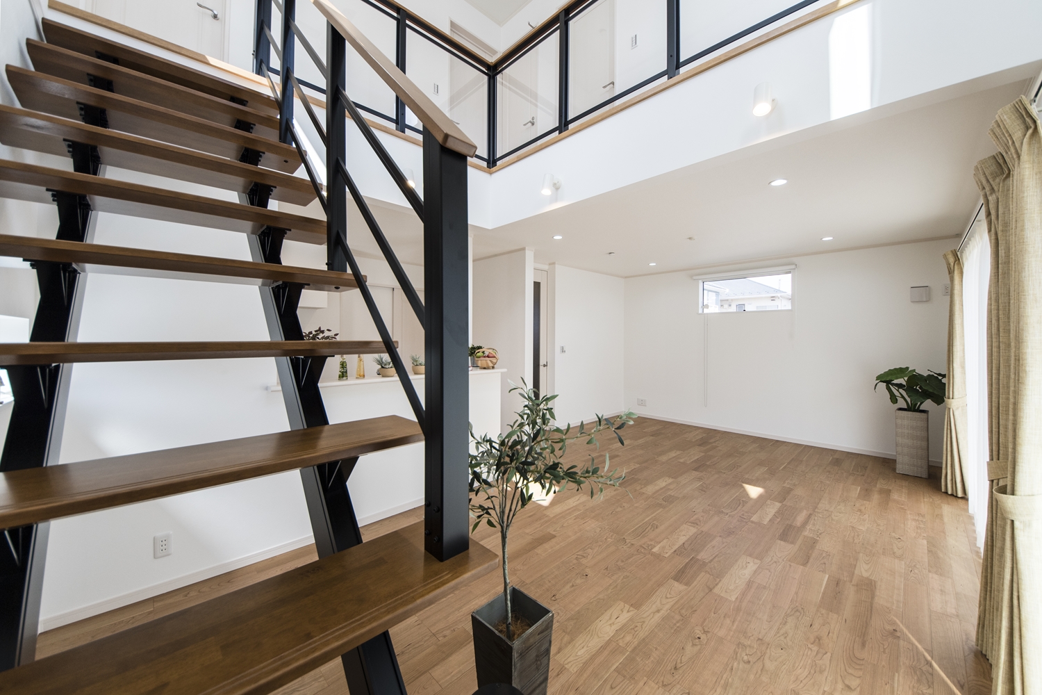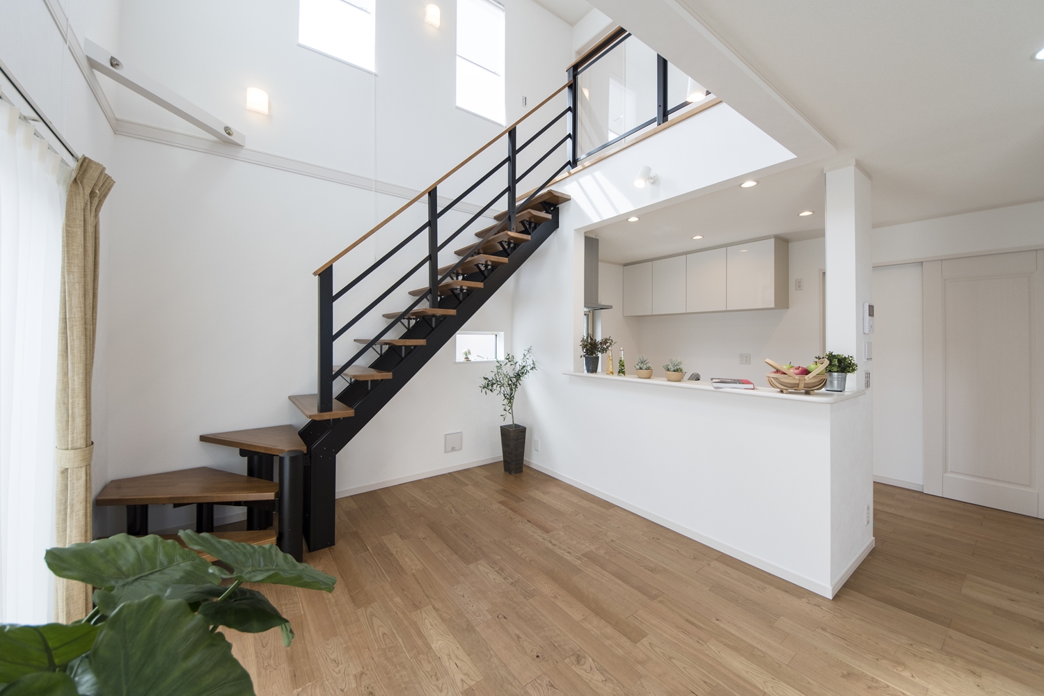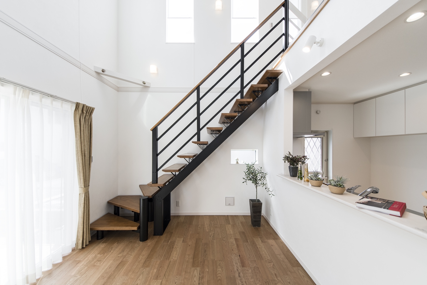 スリット階段と吹き抜けが自慢の明るく開放的な住まい。