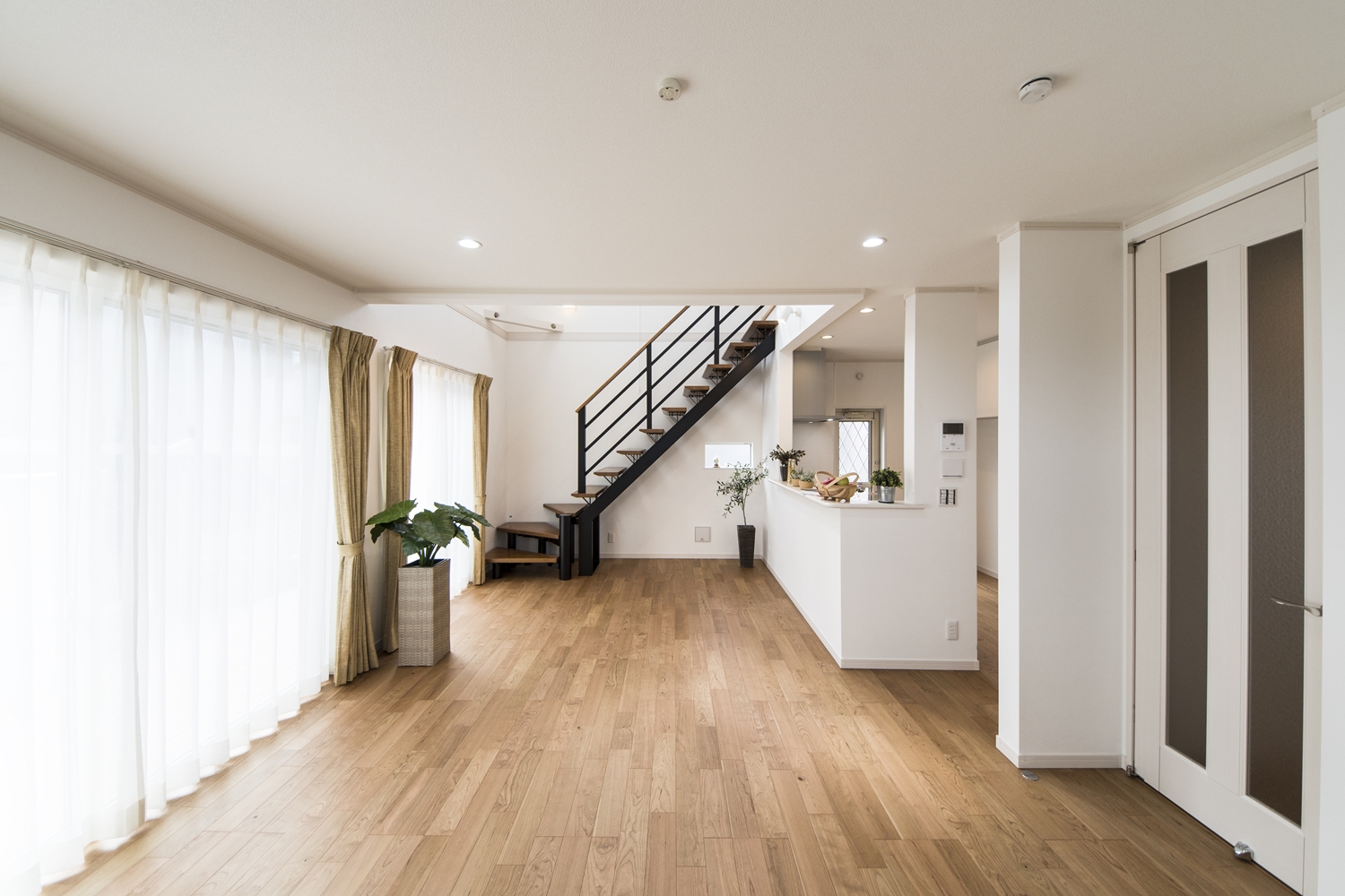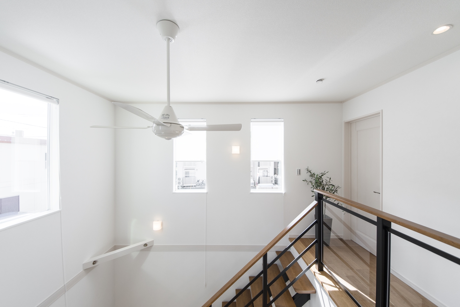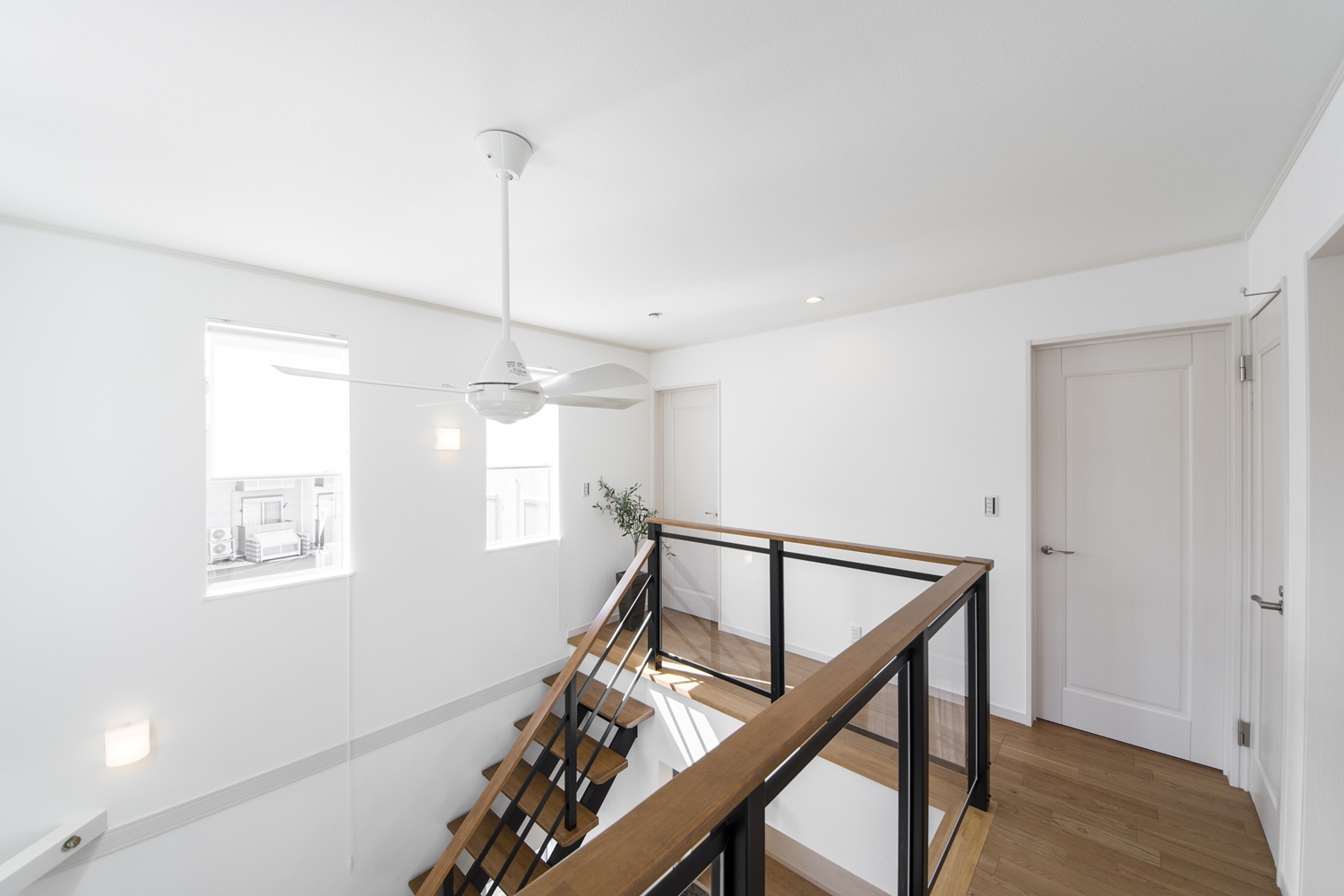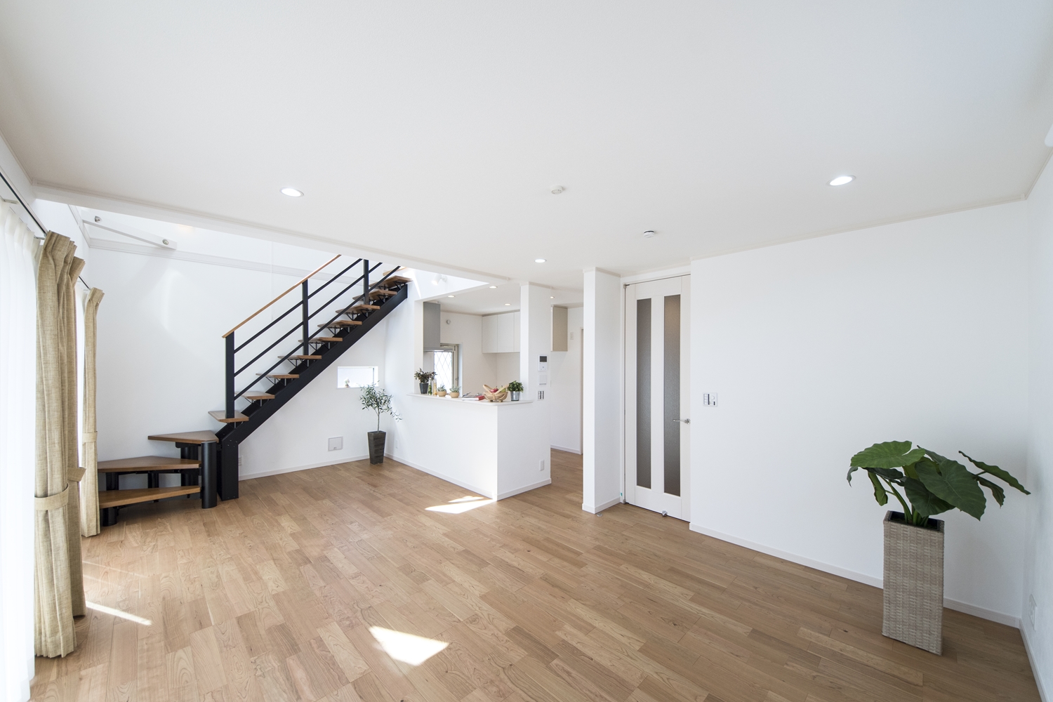 スリット階段と吹き抜けが自慢の明るく開放的な住まい。