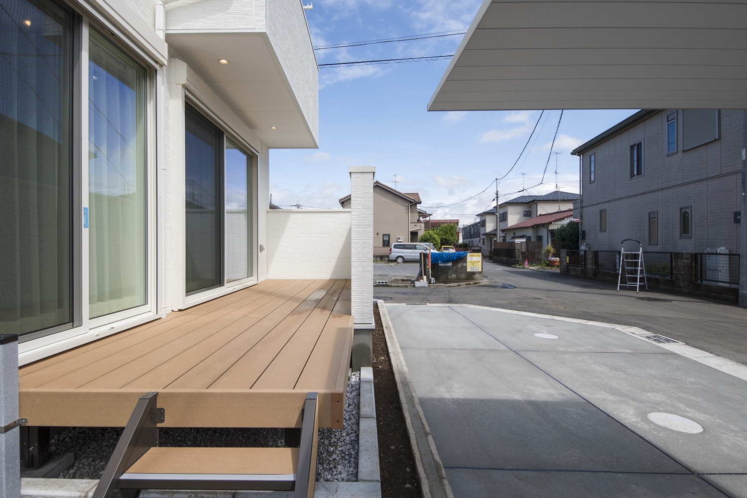 ウッドデッキ/リビングから庭へ、庭からリビングへ「アウトドアリビング」として使える快適な場所。