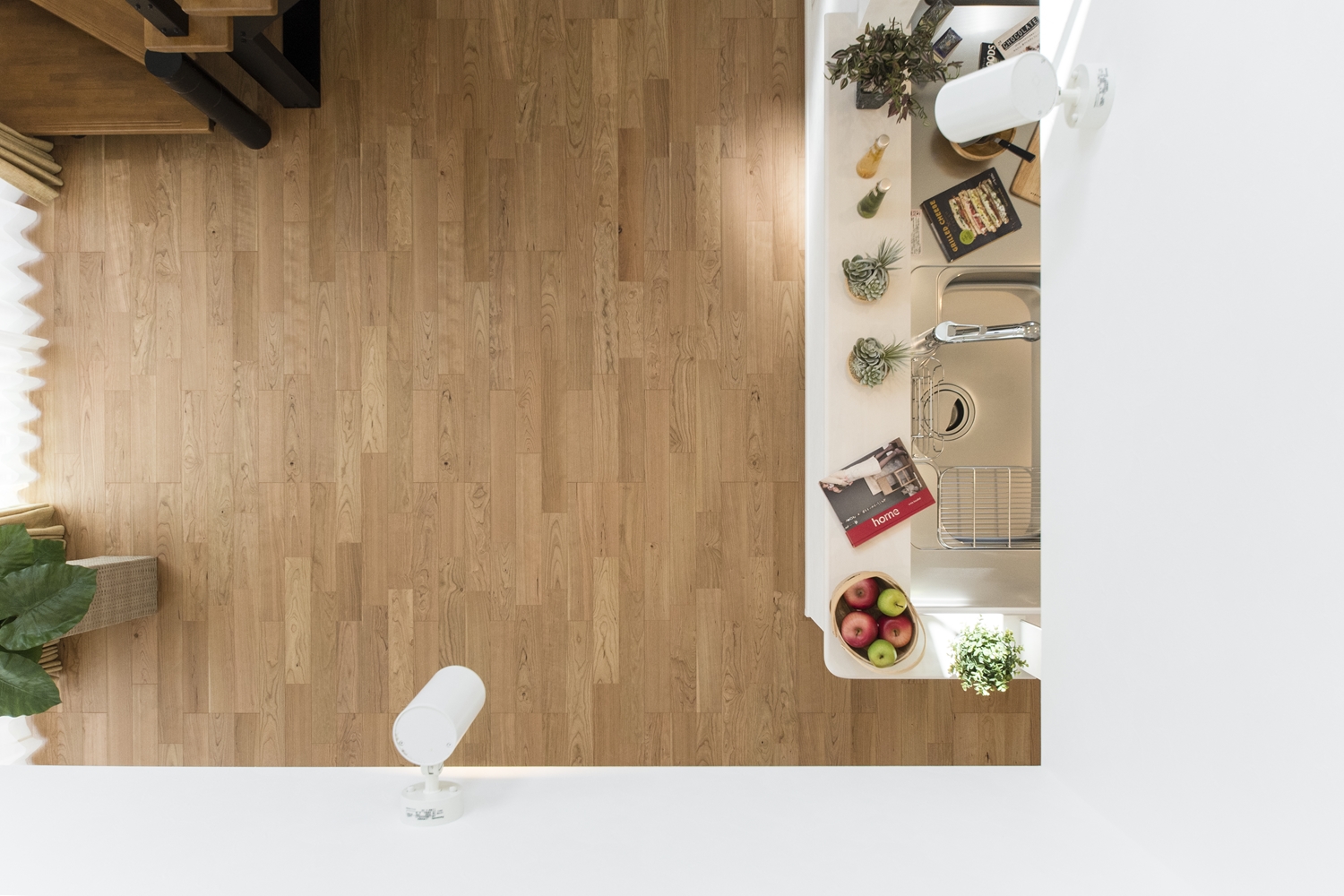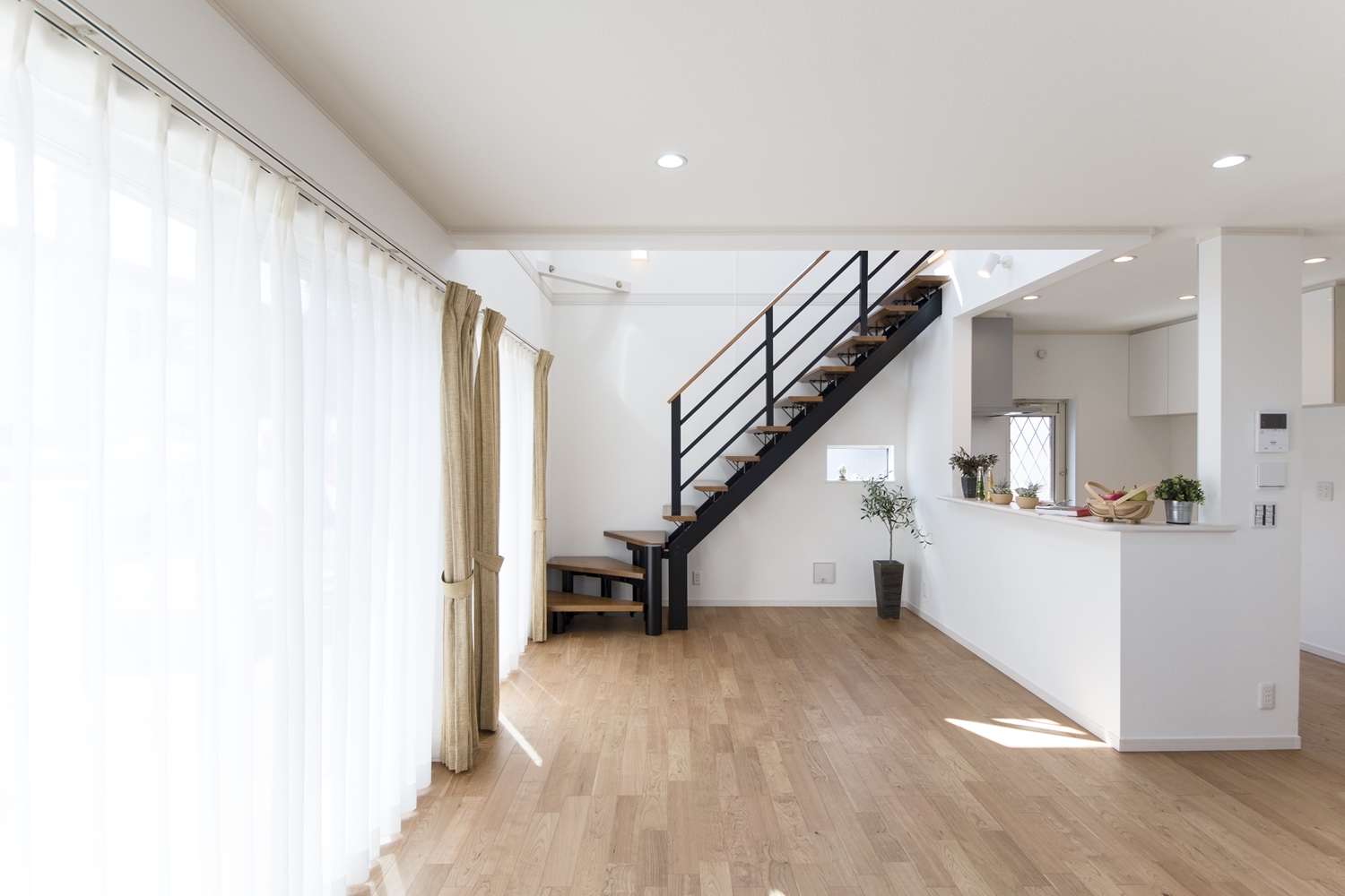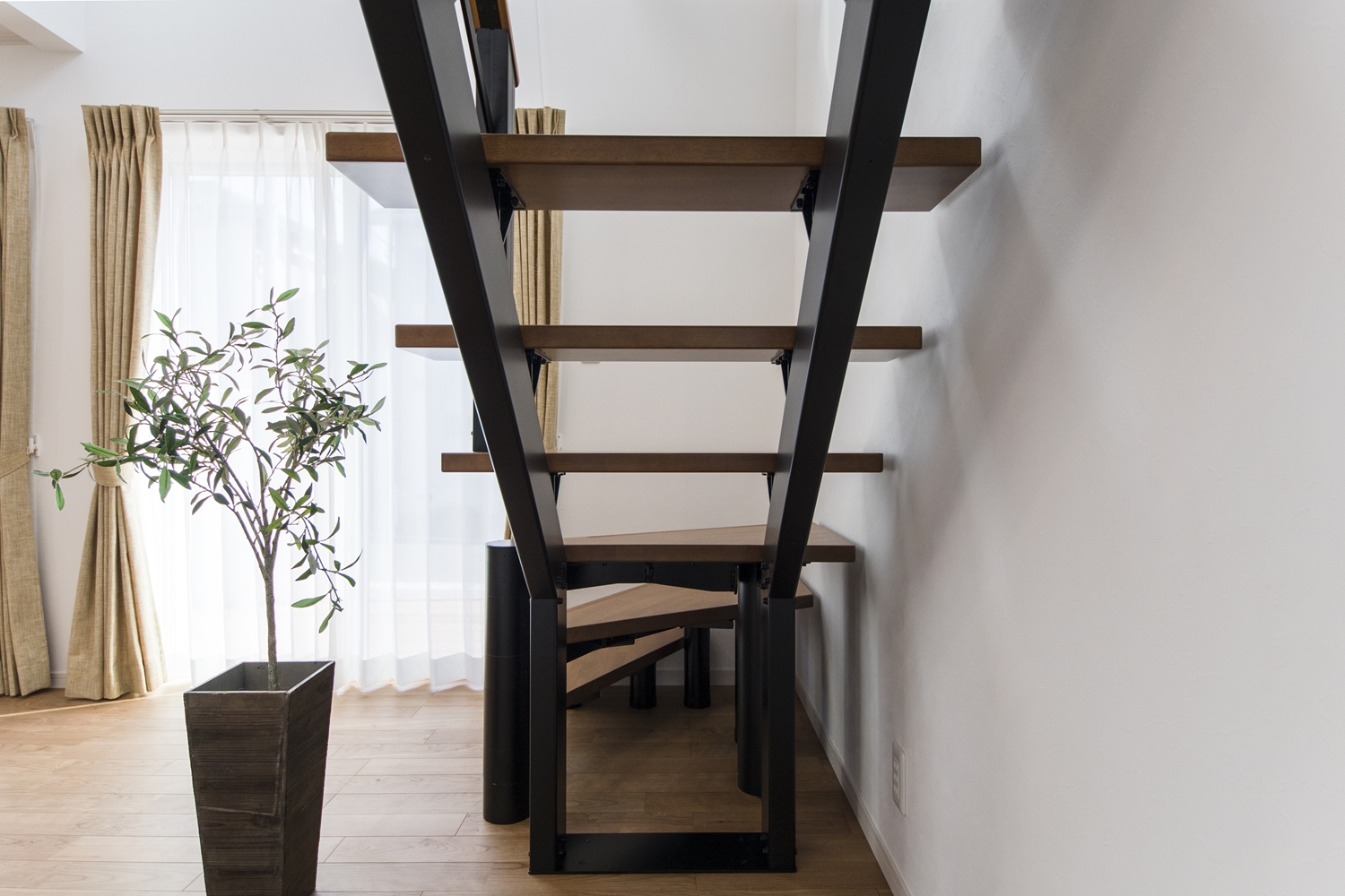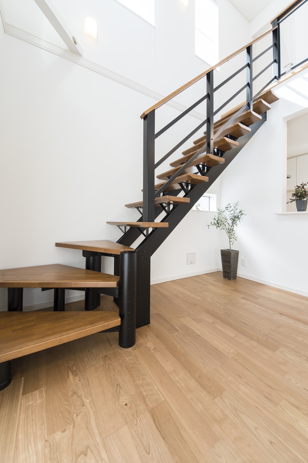 光や風を遮らず階下と階上を軽やかにつなぎ、快適な空間を演出するオープンスタイルの階段。