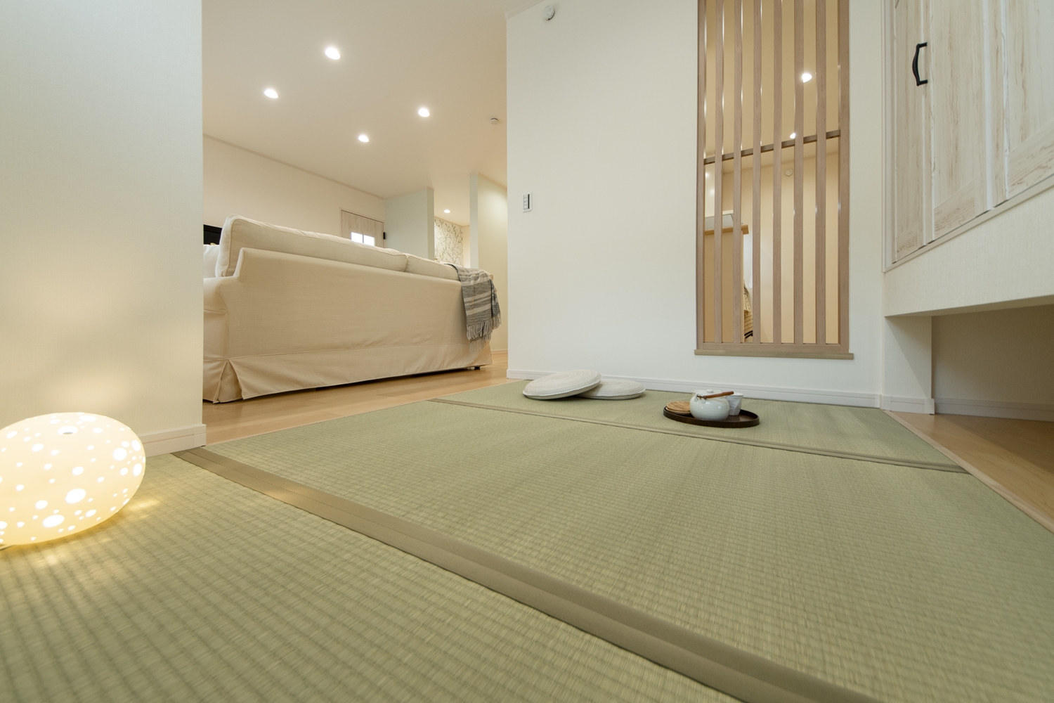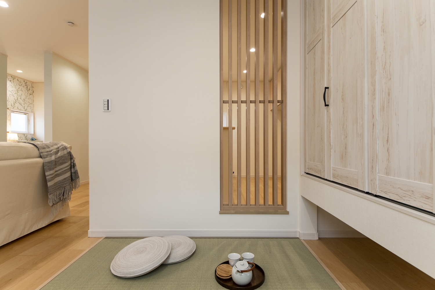 リビングの一角に畳コーナーを設えました。子どもの遊び場やくつろぎのスペースにぴったりです。