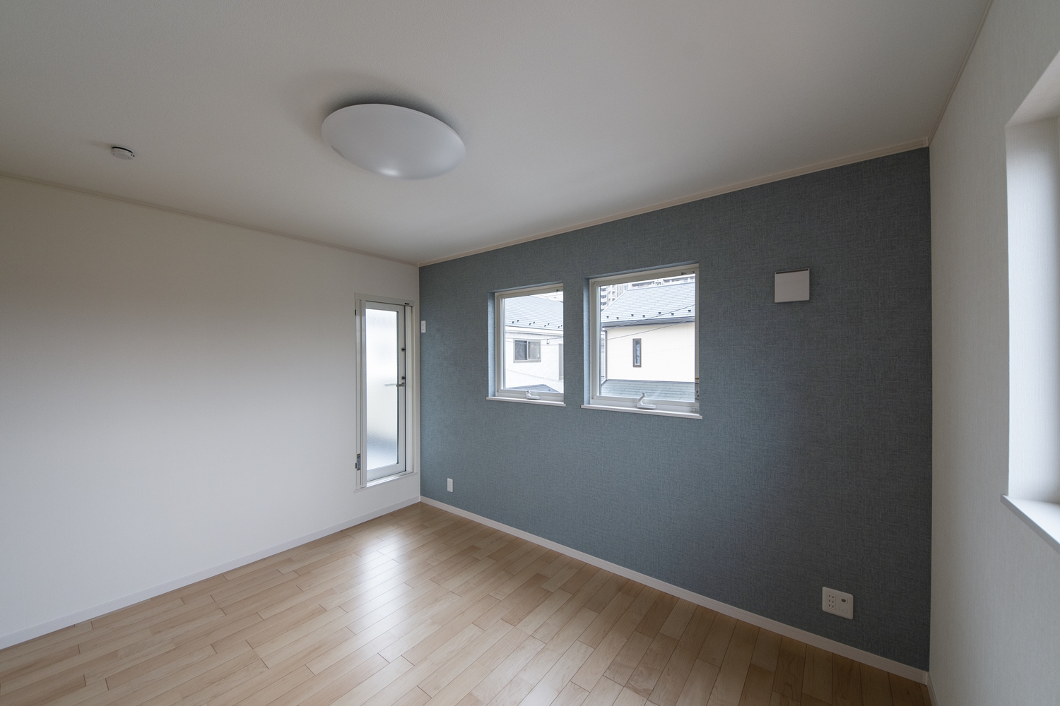 2階洋室/ブルー系の壁紙をアクセントにした、爽やかな空間。