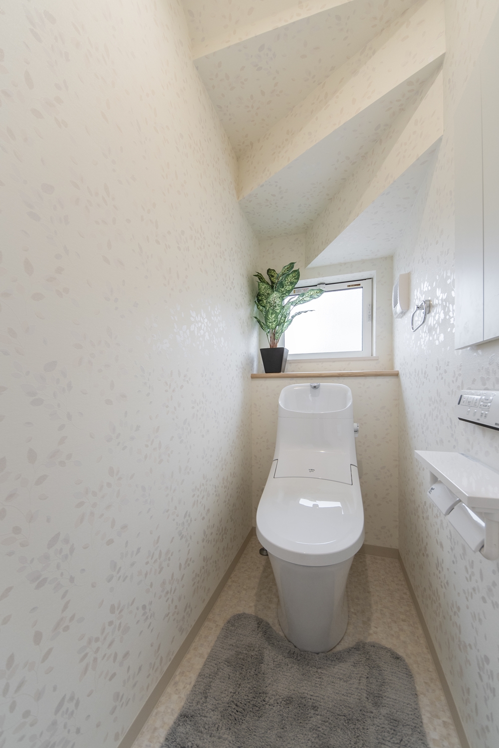 トイレ/キラキラ光るリーフのクロスが、透明感のある空間を演出。