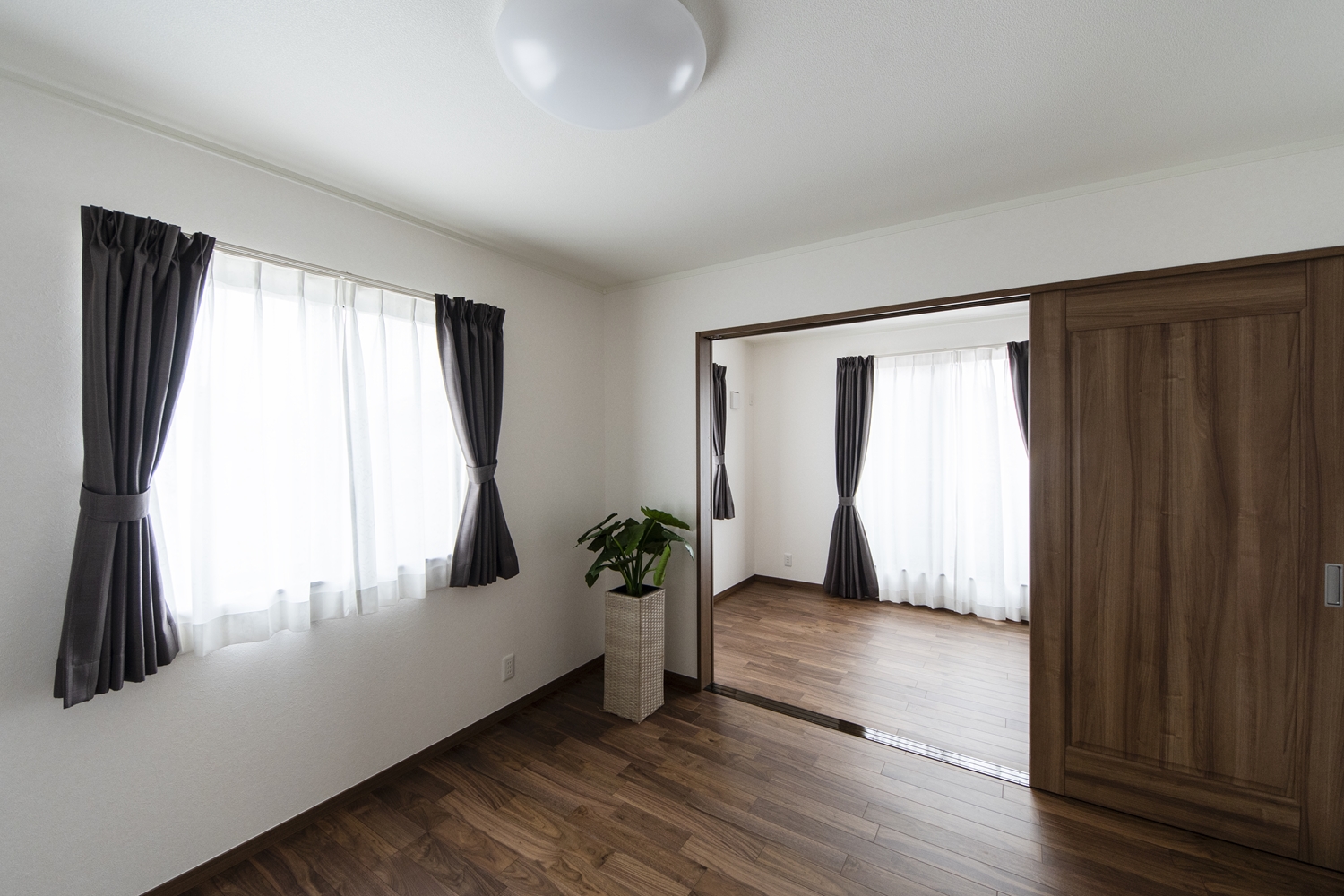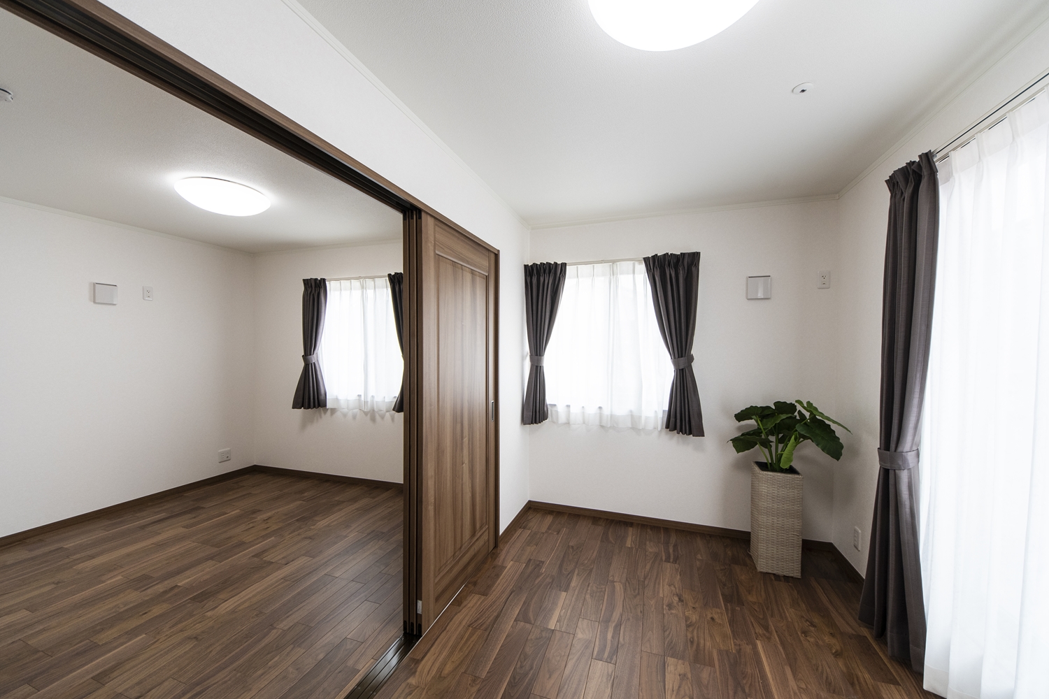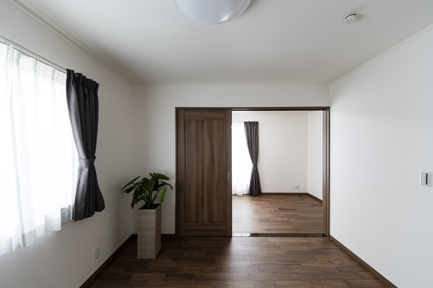 2F洋室/2つのお部屋の真ん中に引戸を設えました。開けるとお部屋がつながり開放的に。