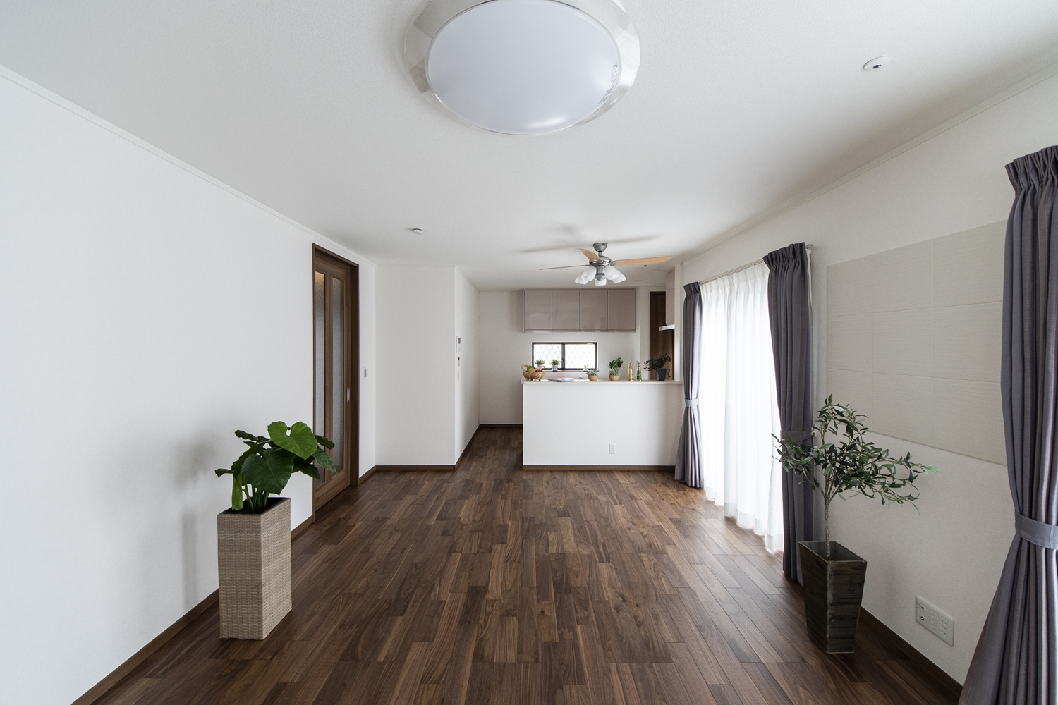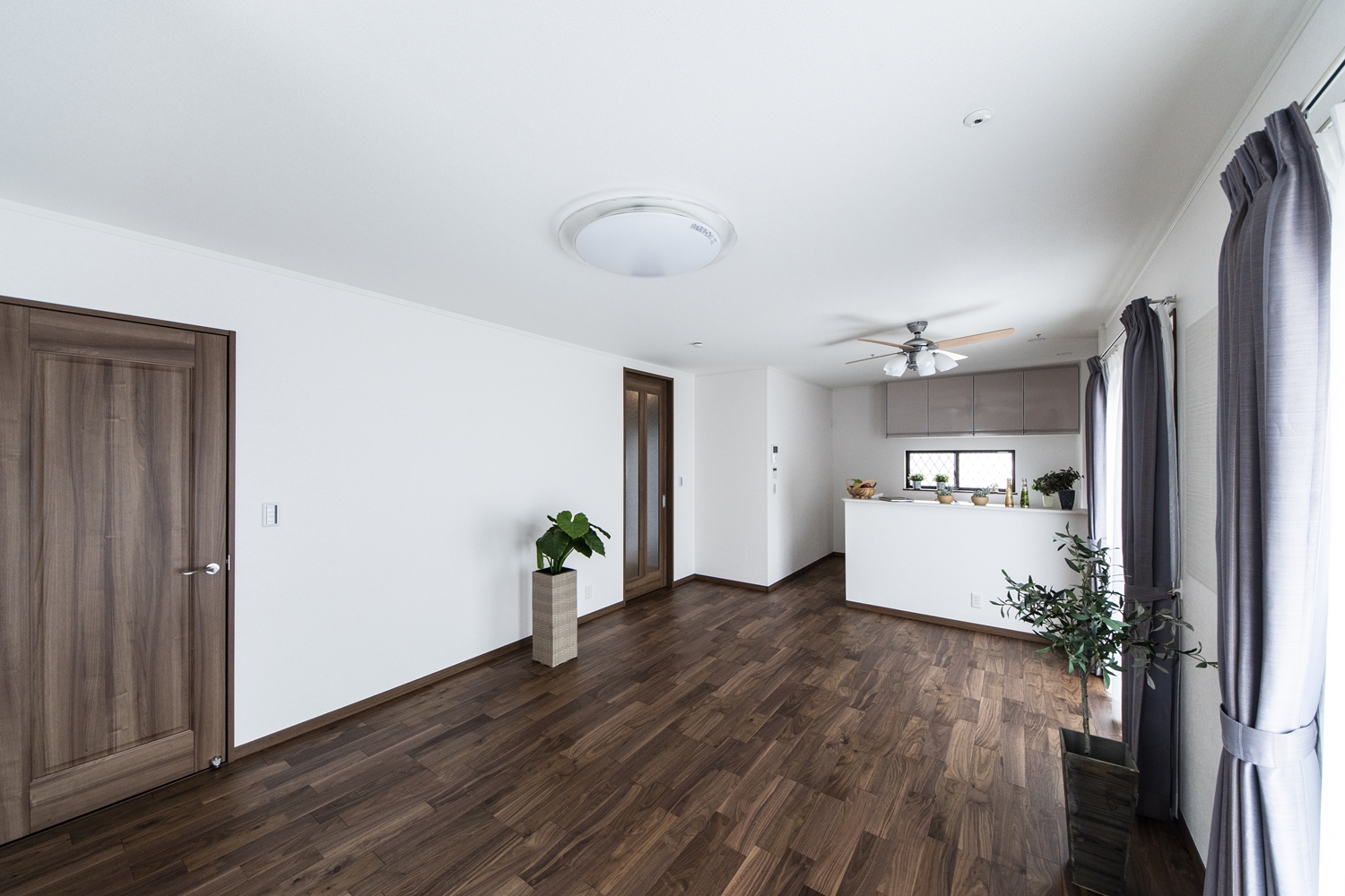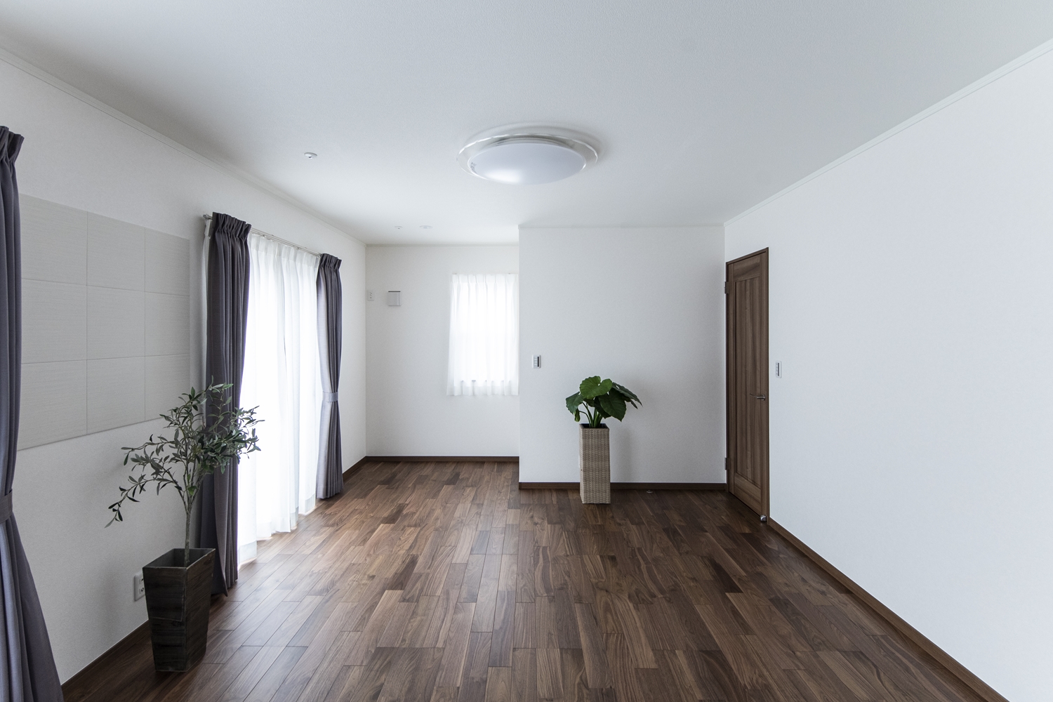 2F洋室/黒褐色の深みある色調ブラックウォルナットのフローリングが、上質で落ち着いた空間を演出。