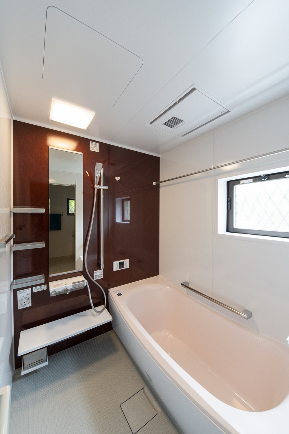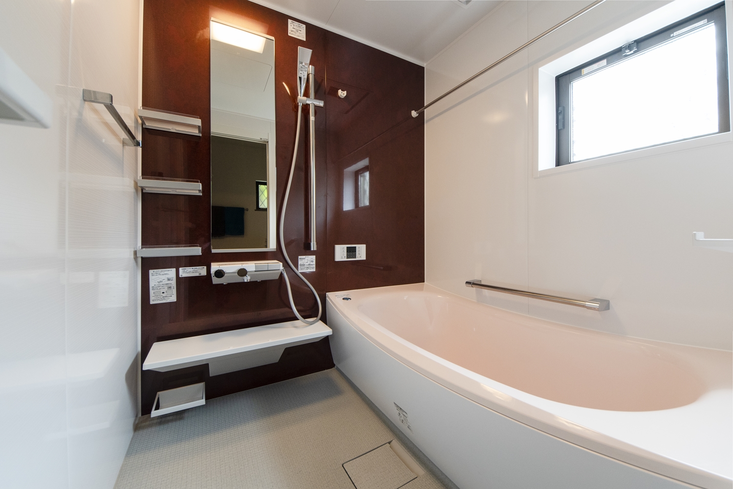 バスルーム/艶やかなシルクの織物をイメージし、レースや花模様をあしらった気品のある柄のアクセントパネルを施しました。