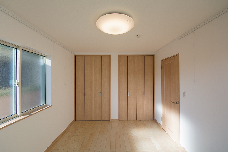 ダブルクローゼットを備えた収納たっぷりの2階洋室。