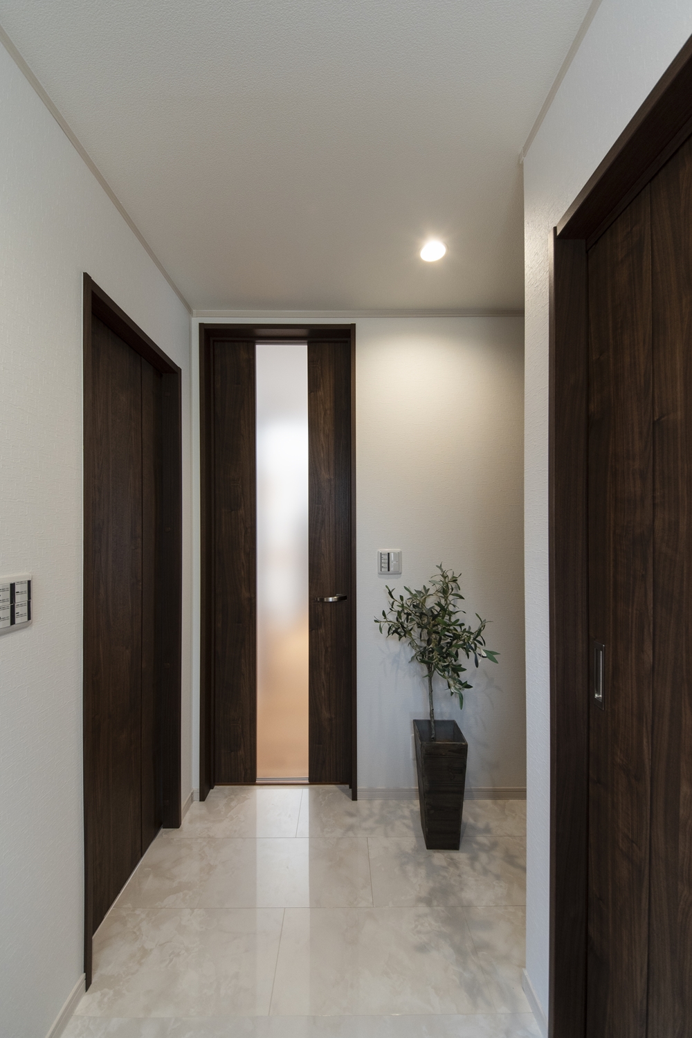 玄関ホール/傷や水・汚れに強い大理石柄の化粧床材を施し、高級感のある空間に仕上がりました。
