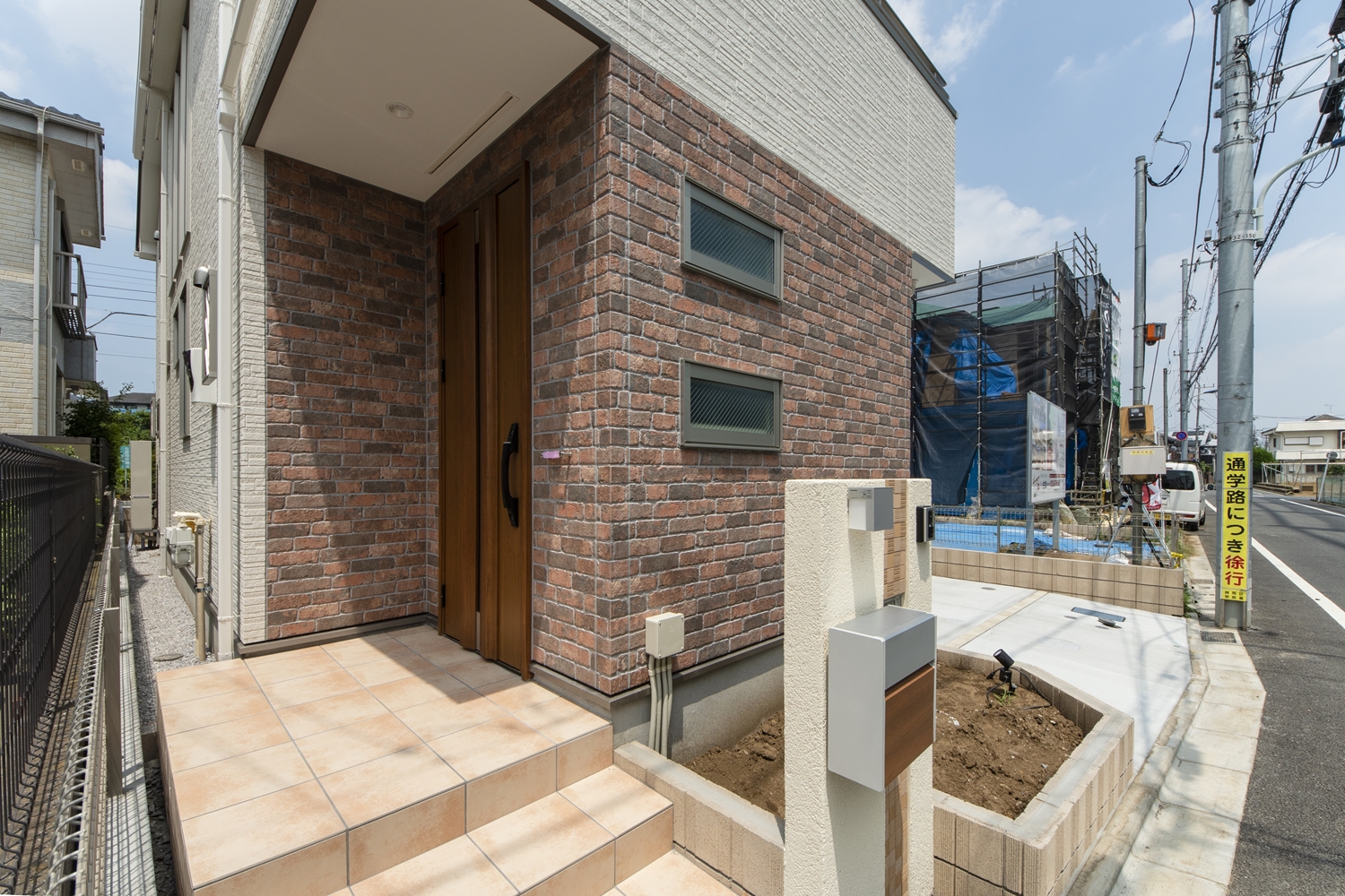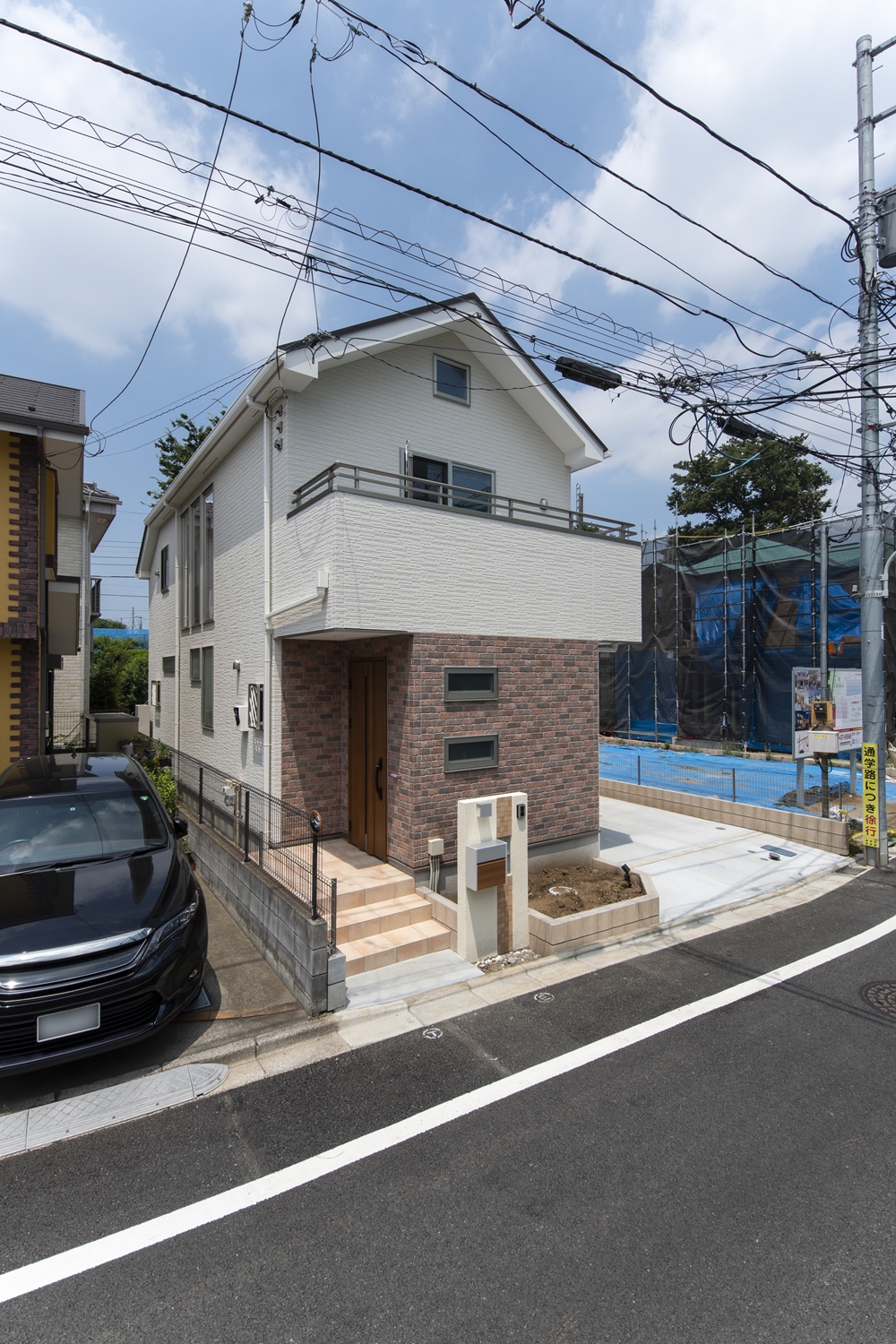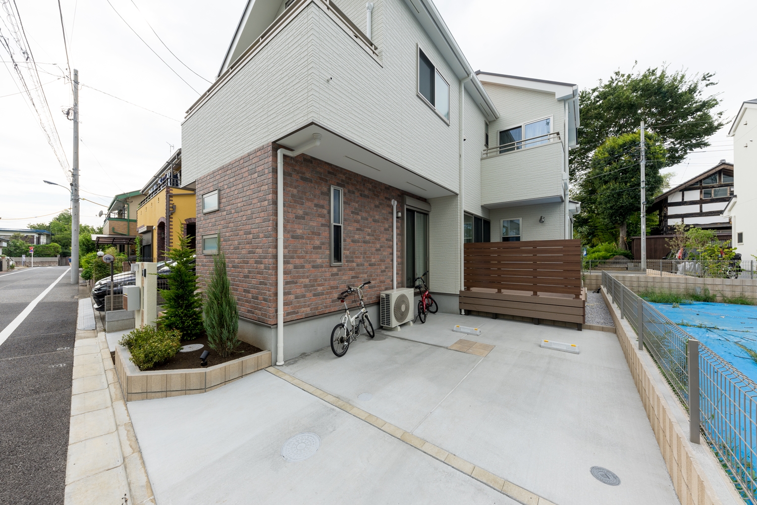 白いサイディングをベースに表情豊かなレンガ調サイディングをアクセントにした、温かみのあるナチュラル&モダンな外観。